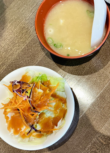 For dinner, we shared a Sunomono Salad, Yakisoba with Chicken, Hawaiian Sunset Roll, and Seafood Combo Tempura Roll. Our order came with two Miso Soups and a House Salad with a ginger dressing.