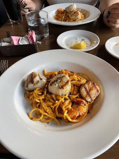 The hostess had to take our drink orders, and once we finally got a server, he was nice but not quite what we needed. He retook my drink order (as I never received my drink), then disappeared. I was brought my drink by a different server with no straw and had to grab another server after 10 minutes just to get said straw. I took one swig of what I thought was sprite and much to my displeasure I got a mouthful of seltzer. My fiancé then flagged down the waiter to let him know, and he, John, told us to our faces that he was aware that the sprite tap had been acting up, but he just wanted to "see what would happen." Sir what?