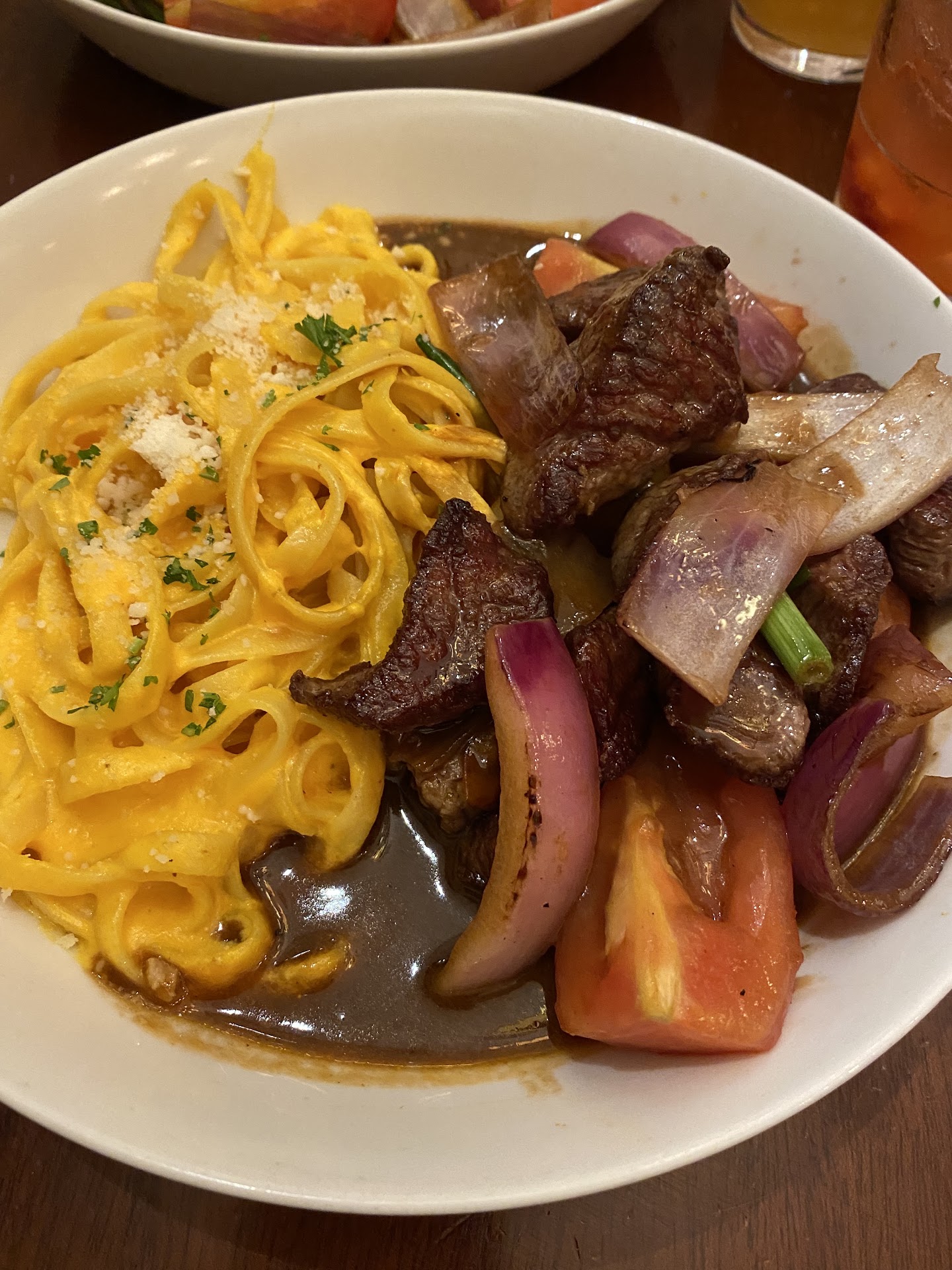 For dinner, I ordered the Fettuccini a la Huancaína and my husband ordered the Pollo Saltado. The lomo saltado in my dish was perfectly seasoned but the fettuccini was not what I expected. I love huancaína sauce but this was more on the cheeser side and very thick in consistency. Needless to say, I didn’t finish the pasta portion on my dish. My husband said his pollo saltado was delicious. No complaints on his part about the food.