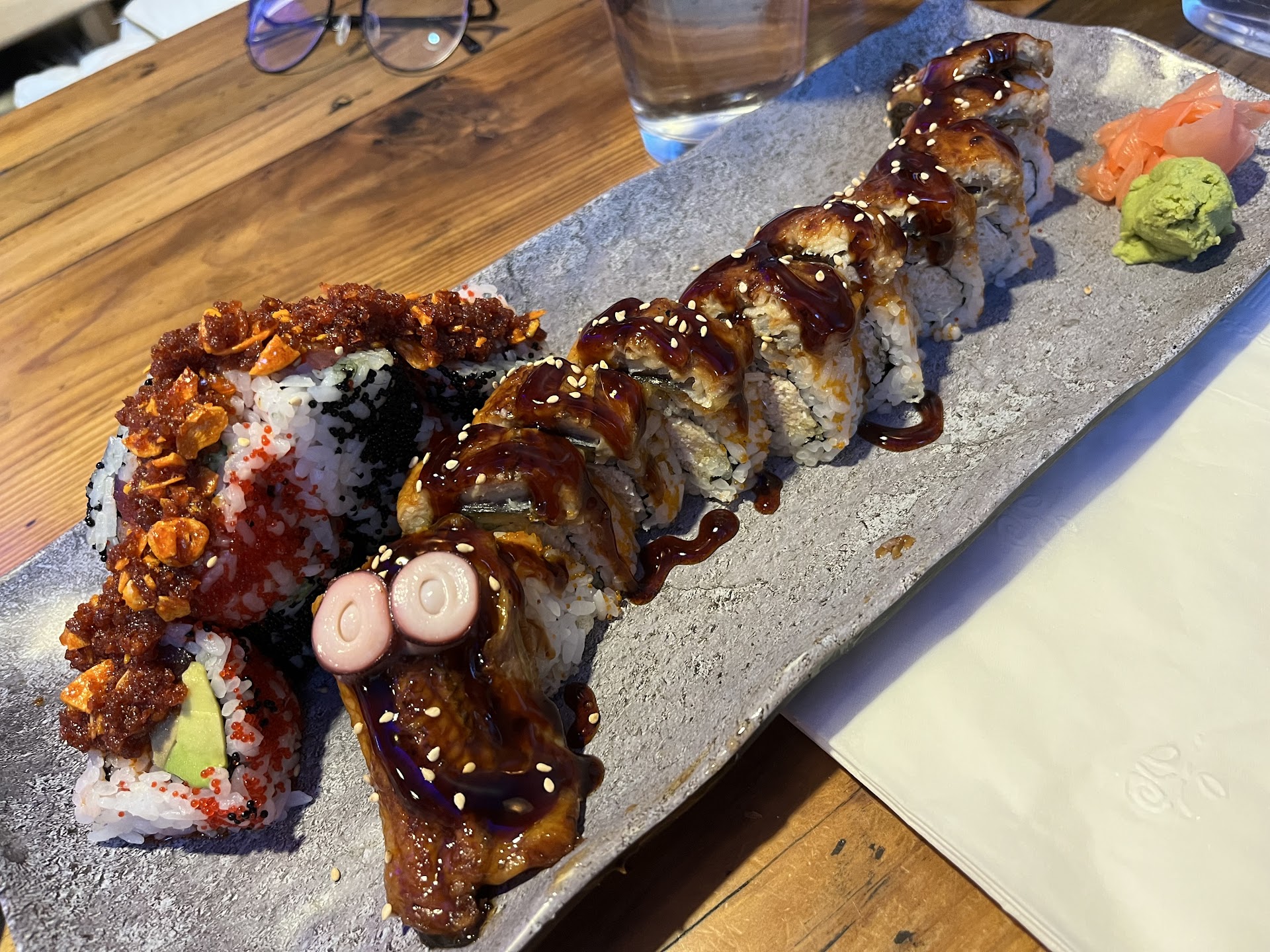 Read moreCame in during a weekday late afternoon for dine in. Restaurant was empty except for one other occupied table. Waitress was very friendly and great at explaining the menu and answering our questions. Ordered the gyoza appetizer, sushi platter, a volcano roll, and the dragon roll. Didnât find the pieces on the platter particularly fresh..fish had clearly been sitting out for awhile. Also, the seasoning spice they use on the volcano roll was really salty. The presentation of the specialty rolls was beautiful though! Overall a decent small lunch place for a quick meal and attentive service but fish taste/quality missed the mark. Fresher fish can be found elsewhere in the area if youâre craving...