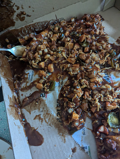 Read moreThe pizza was made nice at the college park location but the Rockville Pike's location is more like a puppy's diarrhea poop. Maybe angry staff bent on destroying business via customer's dissatisfactions or poor management. Over-sauced, and you would end up scooping up the pizza with a spoon and knife. This is our second consecutive experience here, it's like they pour a gallon of sauce on the bread and the toppings wouldn't stay. Everything was floating like a puppy's diarrhea poop. Yes, this is the pizza in the picture. This is disgusting in look and I can't imagine feeding myself with this thing. I hate eating outside and it's just getting worse. Shame!!
