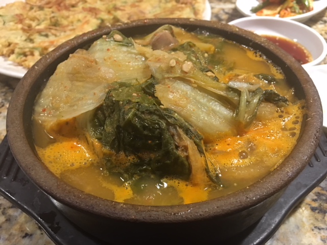 The Missus (bless 'er) and I had lunch here recently after discovering that our favorite papusa spot located next door had closed its doors permanently (d'oh!). We shared a tofu and clam soup and beef bibimbop. Both were outstanding. The broth of the soup was delicate, with a hint of clam that only comes from fresh clams and their liquor. The sizzling pot of rice, beef and veg did not disappoint. In fact, their preparation has now become the standard by which others will be judged. The veggies were still crisp and hot. The rice sticky and crispy, the meat flavorful and spicy. The pickles, ranging from the standard kimchi to eggplant, each were lively on the palate with spice, but not to the point that the flavors of the veg were overpowered. The service was very polite, but our server was extremely busy. The men's room was spotless. Really... We are planning on returning very soon, after which I will re-visit this review and the...
