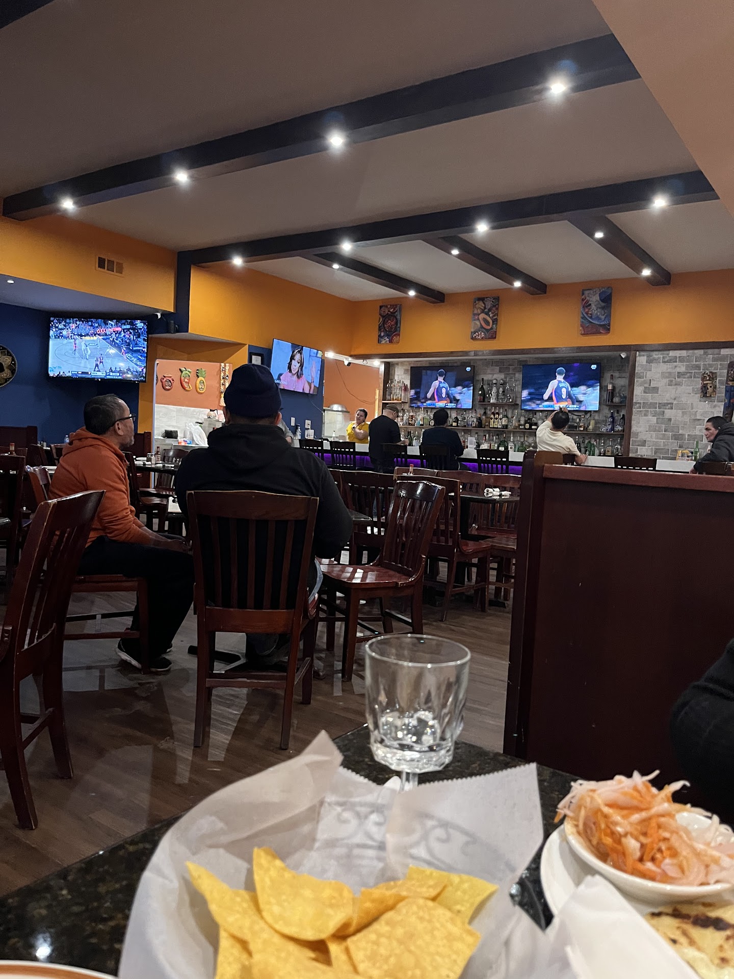 Should be 0 stars. Horrible service, extremely rude employees. We sat at a bar table for 15 minutes while waitresses repeatedly walked by, looked right at us and ignored us. We were very patient since the restaurant was sort of busy (only about half full though). We tried to smile and politely get their attention but got no greeting, no menus, no sort of acknowledgement at all. We walked to the bar to try to order a drink and the bartenders made a conscious effort to ignore us while chatting with other patrons at the bar. Eventually we moved to a bar seat where one bartender (lady in a white shirt, hair pulled back) was cutting limes right in front of us. We asked her if we could please order a drink when she had a moment. She looked right at us and then went back to cutting limes. We asked if we had done something to offend her and she just said "no English" and walked away. So I guess they won't serve non-Spanish speaking customers? We finally got a beer from someone else who also clearly didn't want to serve us. At this point we tried to leave but had to wait another 15 minutes for the check while they ignored us some more. We were there for almost an hour and never even came close to being able to order food and we clearly weren't welcome even though we had been nothing but polite and extremely patient. Worst and rudest service I've ever seen...