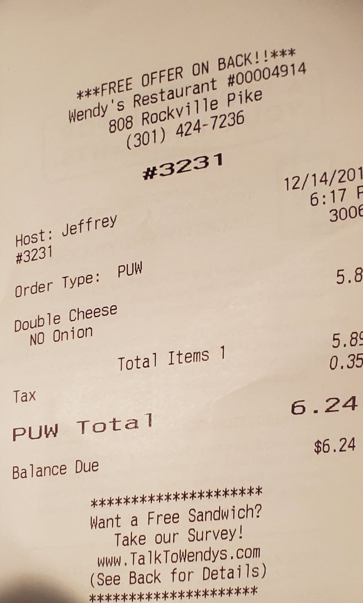Read moreI’m not giving less stars because I’ve been to the drive through before and it was fine, but today it was terrible and I don’t know another way to give them feedback. I just went to the drive through today around 12:15pm and already when I was ordering the guy couldn’t get my order right from the speaker and seemed to be multitasking because he wouldn’t respond for a long time. Then I get to the window, pay, he gives me my drink (no straw) and closes the window while I wait. Then a woman opens the window and tries to give me another drink, so I tell her I have the drink but not the food. She closes the window again and I wait for a long while again. They can’t ask me to wait at the designated waiting spaces because they’re full and people are leaving the cars and going inside to check on their orders. Then a spot finally opens up and they ask me to park there. A while later another guy comes with just a sandwich, and I have to ask him for the fries and a straw. I leave frustrated and don’t check everything, but sure enough, I got a regular cheeseburger instead of the baconator I ordered. I can’t even check my receipt since I didn’t get one.