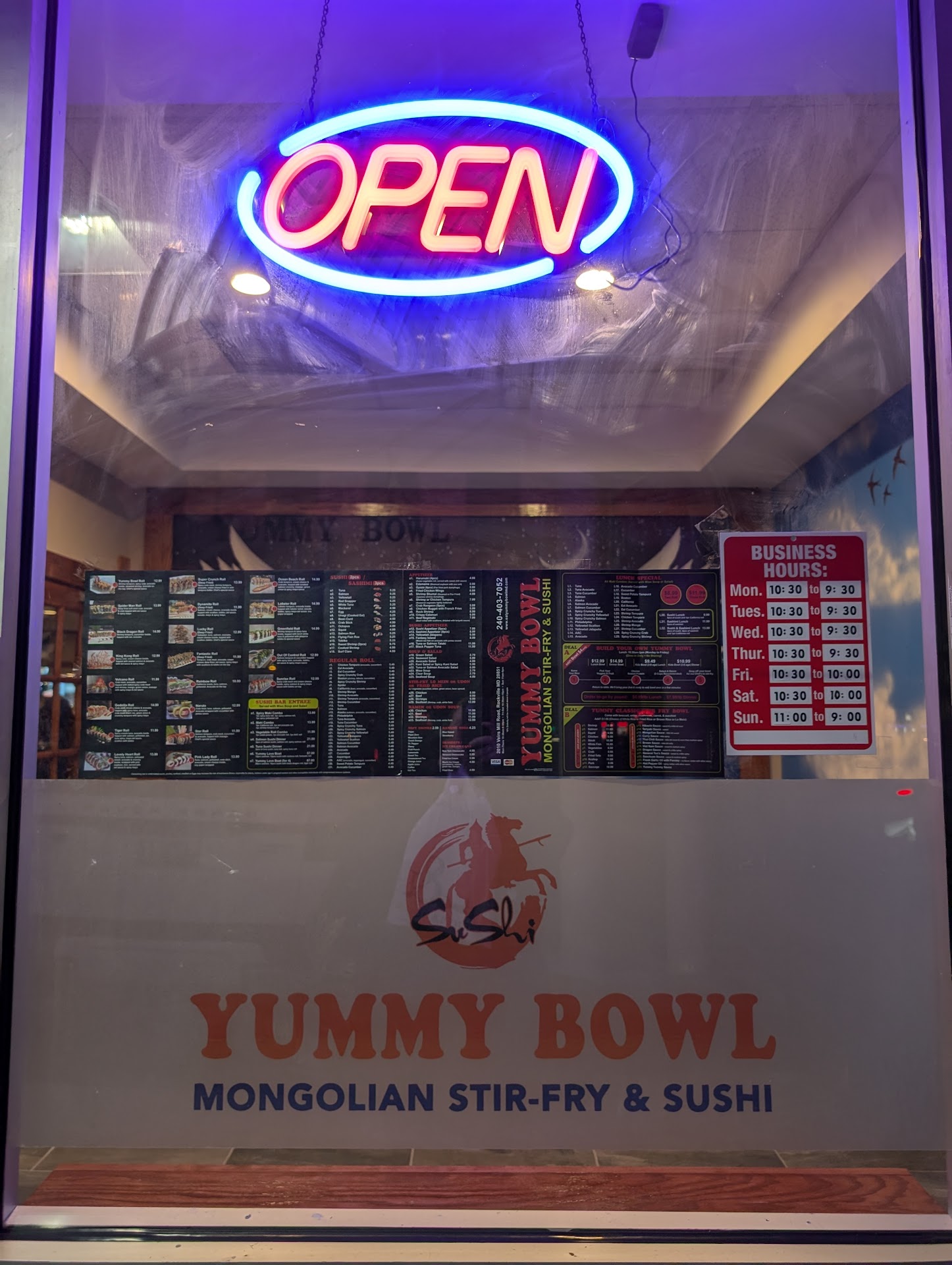 I was scrolling through Instagram and saw the ad for the opening so I decided to try this place for dinner. There has been a lot of hype online comparing it to BD's which was a Mongolian BBQ place in Bethesda from over a decade ago so my expectations going on were pretty high. My expectations were not only met they exceeded them. The restaurant is located in the Twinbrook shopping center and is where the Bamboo Buffet used to be. It was not overly decorated but clean and just simple tables and chairs with an Instagram wall you can take pictures at in the entrance. The staff here were so friendly and helpful to explain how everything works. They give you a bowl and a card at your table and you write your name, table number, and whether or not you want your bowl made with rice or noodles. Then you take your bowl and card up to the line and fill your bowl with the ingredients you want, fill a separate cup with the sauce you want them to cook your food with, and then you hand everything to the cooks and return to your table. They cook everything on a large flat top that is open so you can see everything being cooked. When your food is ready they bring it to your table. I ordered pan fried shrimp shumai and a spider roll as appetizers. Both were very tasty and surprisingly light. Normally fried rolls and dumplings end up kind of greasy and fill me up but that wasn't an issue here. I wanted no wasabi or ginger and let my server know and they were accommodating with my request. My server was very good about checking on me and making sure everything was good and I was being taken care of. When a plate was finished they were very fast to clear it away which is very good to see. My bowl was ready very quickly and was hot and fresh when I got it. I got lo mein noodles with chicken, broccoli, zucchini, mushrooms, sprouts and szechuan as my sauce. The ingredients were fresh, the flavor was great, and the szechuan sauce had some spice but it was very balanced. For dessert I ordered green tea and strawberry mochi which they came served with whipped cream and chocolate drizzle which I have never thought to try together but works. I loved everything I ordered and unlike most asian food that I have ordered it filled me up and left me feeling satisfied but not super stuffed. The prices here are very reasonable which makes it easier to try multiple things from the menu during your visit and if you're still hungry after your first bowl you can get a second bowl for an additional $4 (dine in only). I will definitely be...