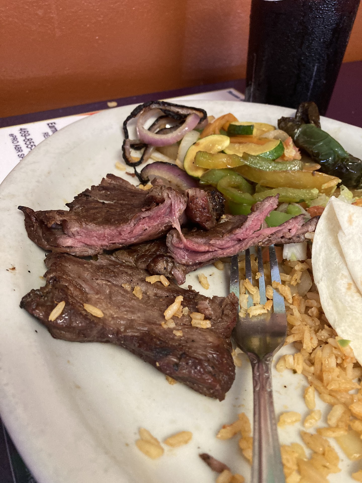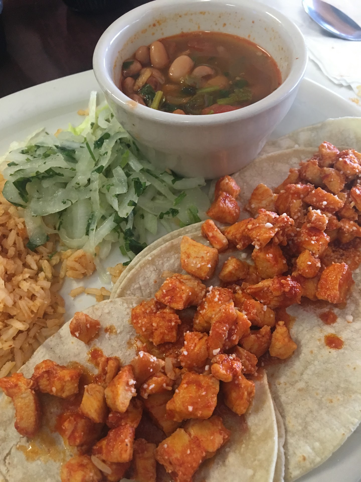 Read moreI used to eat here, years ago and thought I'd try it again. Man, how things change! Its not all bad, Melanie, my waitress, was really good. The food tasted good, but the portions were tiny. I ordered a full sized plate of chicken fajitas, which cost just over sixteen bucks. What do you now get for this? A plate with sauted veggies and eight thinly sliced pieces of chicken breast. Plenty of rice and pico, though. All this is to be put on a 5 or 6 inch street tortilla. I question my waitress, if this was a lunch special, and she informed me that it was the full dinner. OBTW the lunch special is SIX THINLY SLICED PIECES OF CHICKEN! To sum this up, it is not a good value. Sixteen bucks and you walk out still hungry. Doubt very seriously I'll ever be back. Too many other places the serve a good meal for...