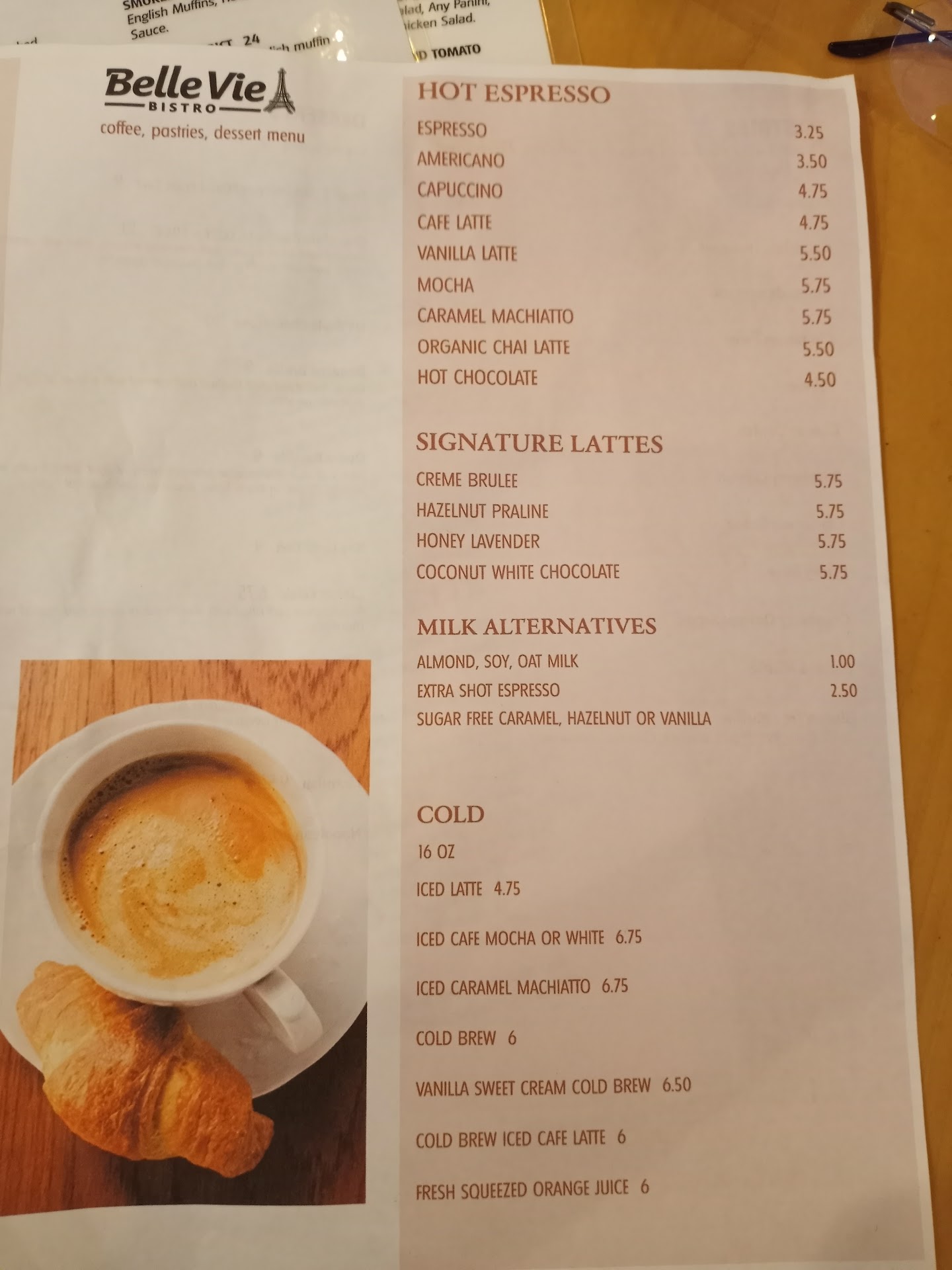Nov 22nd- this was the 2nd time I tried their croissant with the belle vie breakfast. The eggs and potatoes were tasty, the hazelnut praline latte was the best. The croissant has a nice sweetness to it, unfortunately it was dry again. The first time it was their 1st day, so I was kind and patient, but today it had the same issue as the last. For those interested at home for a moist croissant choose high fat butter, prepare the dough keeping it as cold as possible, even proofing at a lower temp. Then cook at a lower temp for longer, so the butter doesn't leak out and the inside of the croissant is soft and pillowy.