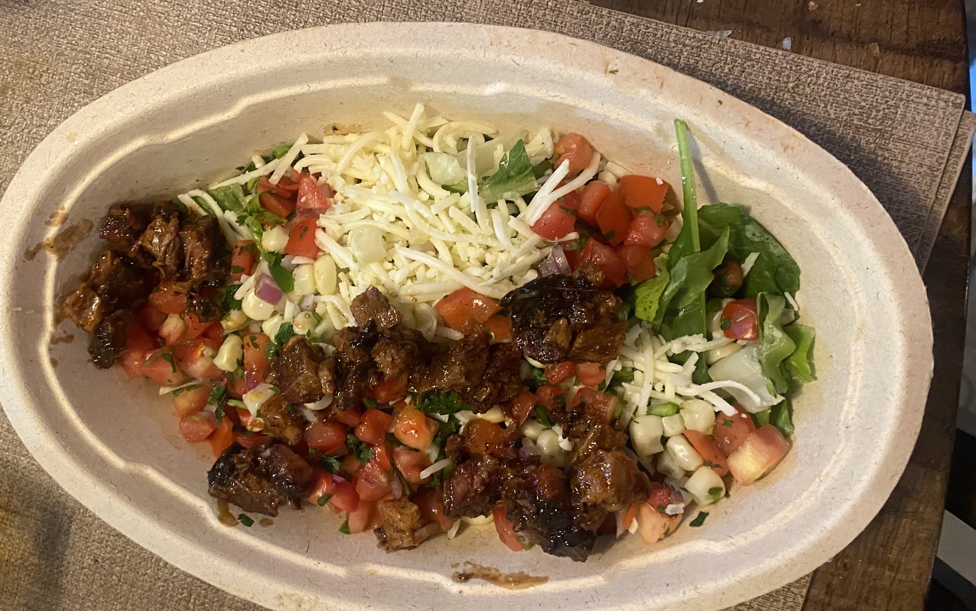 Pricing has gotten out of control, based on what is being ordered. How can every bowl/burrito cost the exact same???? This is where the systems falls apart. The cost for a bowl factors and averages all of the ingredients based on protein and the option to add guac or queso. 16.00 for a basic bowl with all the toppings seems reasonable but how can a bowl for a 13yr old child cost the same when they’re only getting rice and chicken. This is easily a 6-8.00 order, by skipping all of the extra toppings and still being charged the same amount as the person that ordered in front of you with their bowl overflowing is an absolute joke! There should be no reason an order for a family of 4-6 should spend 60-70.00. We can go to the Mex meat market and spend 70.00 and eat for a week with heavy portions if we choose to do so, and the homemade bowls/tacos/burritos are so much better!!