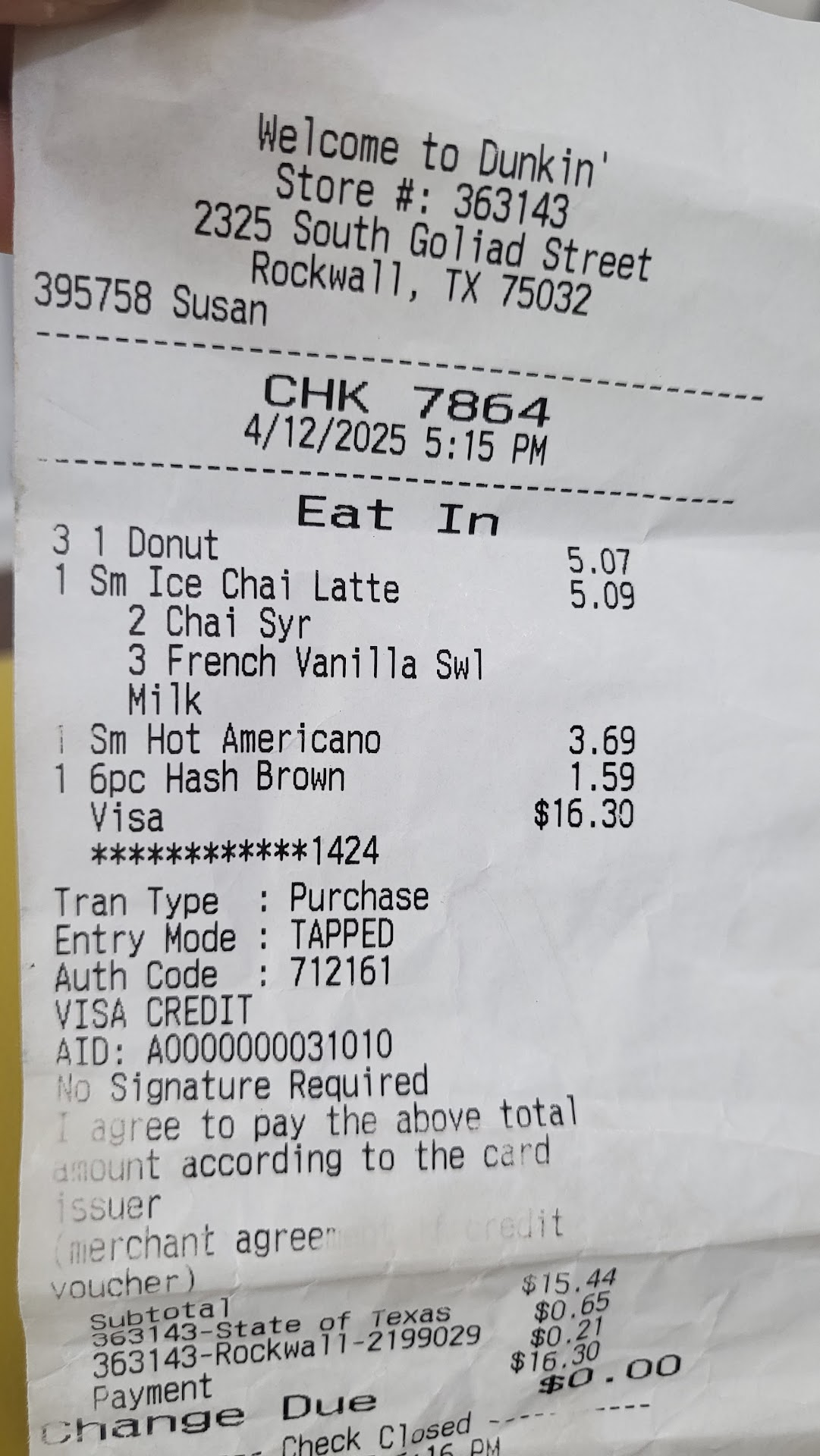The first time was when they got my iced drink order wrong. They did not add the flavoring I asked for. Which to me, not a big deal. I'll move on.