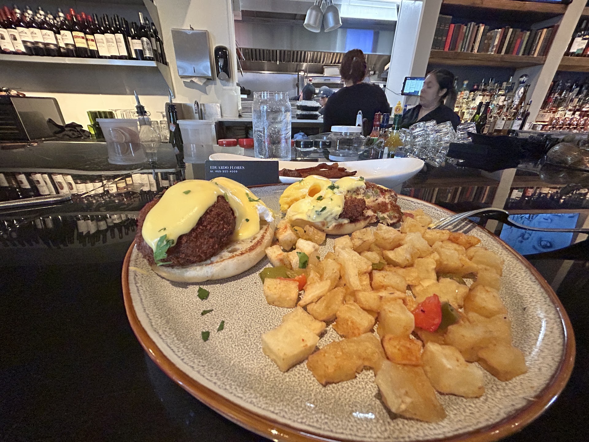 The vibe is Brooklyn-hipster-cool -- lots of interesting books, loft-like space, high ceilings and a ton of character. So I give it high marks for the atmosphere. But it stops there. I don't like to give negative reviews, but after a disappointing lunch experience (pricy, too -- almost $40 with tip), I wanted to share our experience.