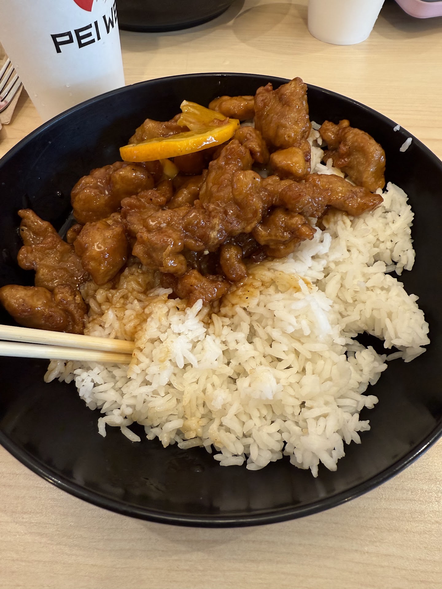 Ā Ā Ā Read moreMy family and I decided to give this location a try. Weāre in the area quite often, but havenāt been to this one since they opened it up. At a prior location my wife had ordered Pei Weiās version of drunken noodles. Though she had problems at the other location she took a gamble and tried again. And they were in her words ādeliciousā. I went for my favorite the orange chicken with white rice. Now usually they seem to skimp on the orange sauce. So I asked for some extra. My son ordered the teriyaki chicken. The last time we had Pei Wei, the chicken in both of our meals was very grisly. This time, only one piece in my wifeās entree was. So even though that particular part was a little unappetizing, it was already better...