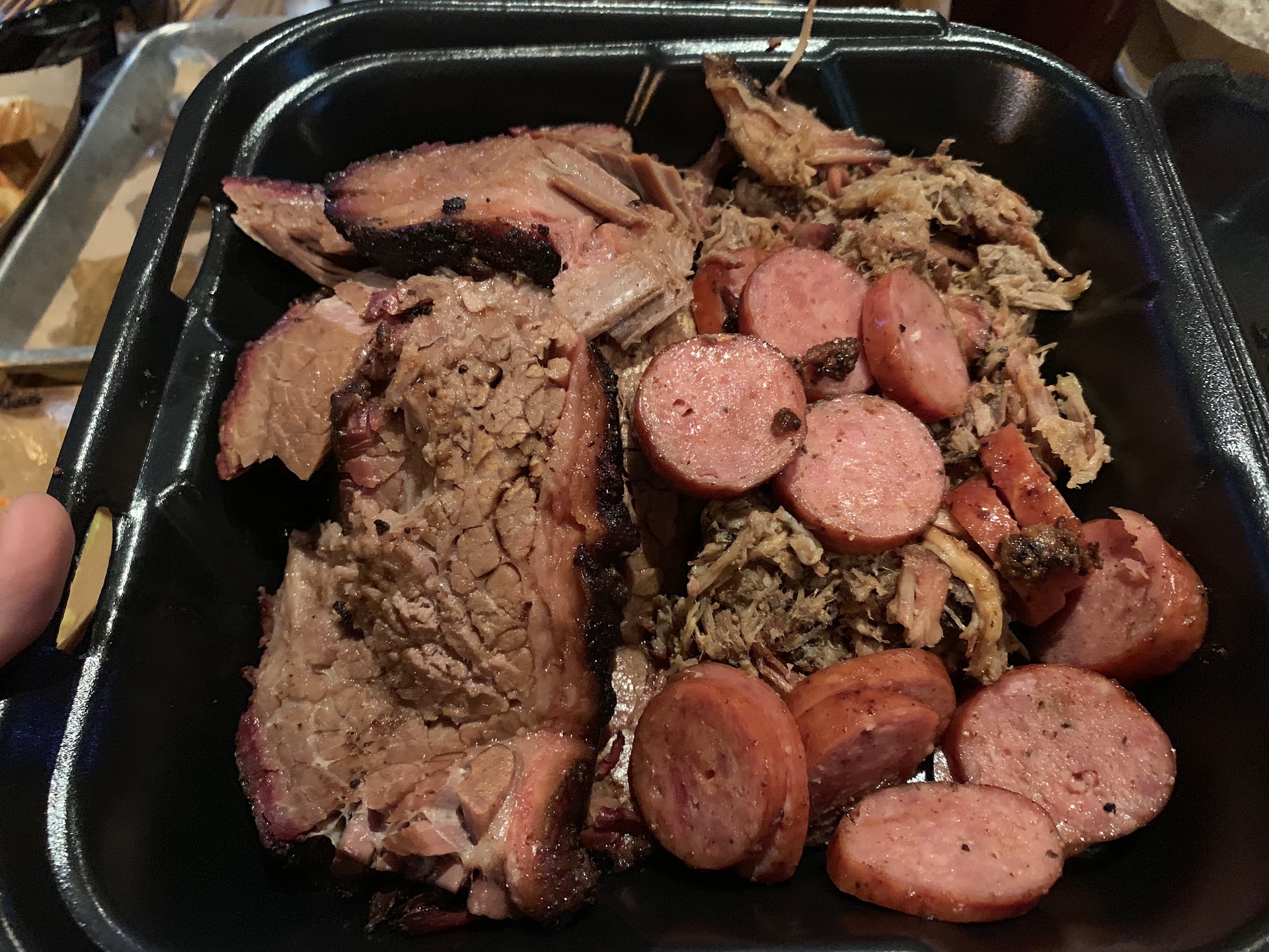 By now, I was too full to eat much, but the brisket was tender, smoked great and easy to eat. Very soft. A smidgen salty, but that was because all my pieces had a lot of bark.