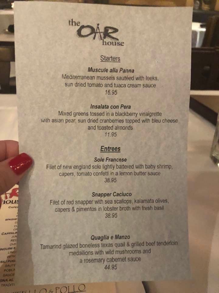We opted to have lunch at The Oar House with a business lunch in mind on a Friday and wanted a place that would not be loud and intrusive. It had been years since I had visited, but I was still hopeful for a good lunch, excellent service, and an atmosphere to be relaxed. We were not disappointed. Before we selected a place to eat, we all looked at online menus to get an idea of what sounded good to everyone. The pricing is not what made our decisions, but it should be noted that the menu you are handed in the restaurant has a few items with higher pricing than the online menu. I would recommend they correct that for transparency's sake. This meal alone was $19, more expensive than the online menu. I am not complaining, but that's an extra lunch entrée at additional costs.
