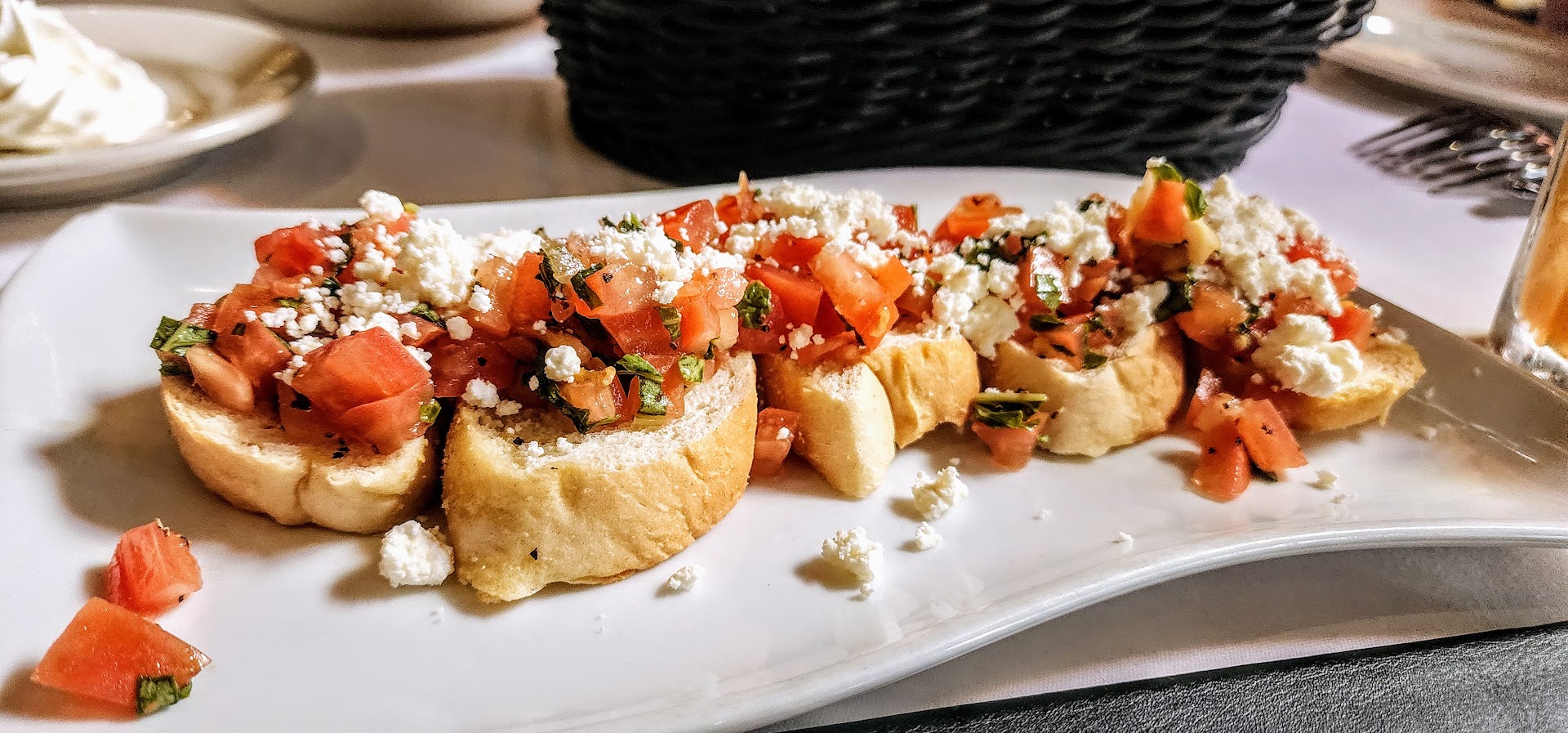 Our server took our orders for drinks promptly, and we opted for a few appetizers to share. We ordered the Funghetti Ripieni, bruschetta, and Cozze al Vino Bianco. Bread and butter were served at the table as well. We ordered Spezzatino di Manzo, Suprema Al Ferro, Caeser con Pollo, Ravioli Di Formaggio, and lobster bisque for lunch.