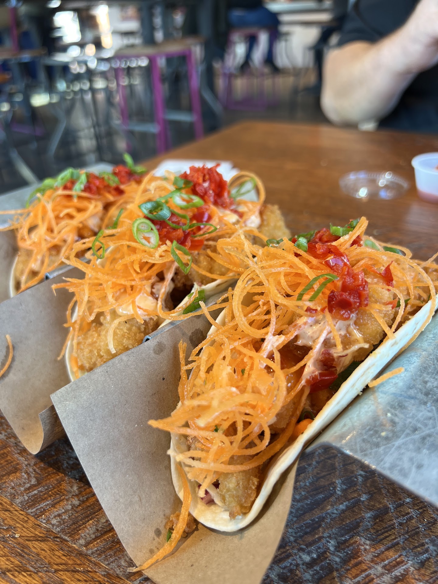 Read moreFood is generally good, though the cold toppings on the brisket nachos always throws me off. I've tried quite a few of their tacos and they all have their charms. My usual picks include the salmon and the chimichurri flank steak. Though honorable mentions for the fish taco for its unusual but interesting flavor profile, as well as the kobe beef burger taco.