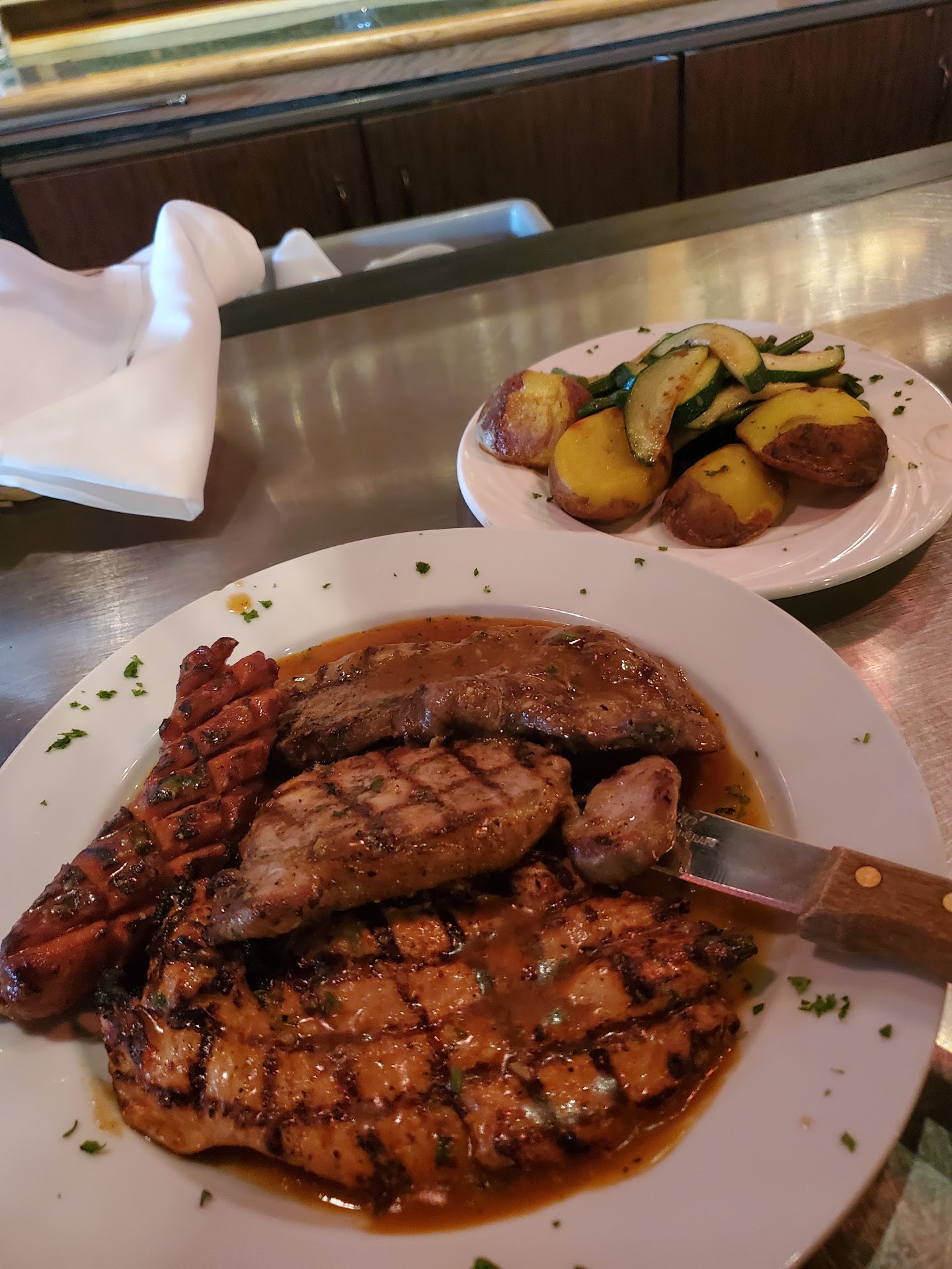 Ā Ā Ā Read moreThrough the past years, Elizabeth's in Rocky Hill has been one of our favorite restaurants. We have eaten many lunches and dinners there, and even an "after the funeral" luncheon. The service and food has always been very good. Recently however, both the service and food seems to be slipping. A few weeks ago, my wife called to make reservations well in advance for 8 family members to gather for lunch, several coming from out of state. Upon arrival, we found several private party's in progress, and no where to be seated, except for breaking up our group at several tables in the bar area, which was also mobbed. We declined this arrangement. A worker explained that the hostess taking our reservation earlier in the week neglected to take our phone number, and they couldn't call us to report that they had overbooked. The person also used the excuse for the reservation takers error as "she's new". We left very upset and disappointed, receiving just a "Were sorry" We went again on Friday night to celebrate my wife's brothers retirement. Upon arrival, the hostess had a hard time figuring out our reservation. Seems like it was just recorded in the book with the requested time, and my wife's first name. Her brothers arrived, and the four of us were soon seated. I should note that the restaurant was not busy at all, perhaps three other parties in various stages of eating dinner. Our waitress was promot in arriving with menus and asking about drinks. We soon ordered appetizers and our respective meals. The apps arrived timely, as did the salads coming with our meals. Then, our dinner came to a screeching halt. The entire wait staff abruptly vanished. We sat patiently, chatting and waiting, and waiting and waiting. No one came to our table to explain the reason for the delay, or apologize. Eventually, our server raced out of the kitchen, followed by another person with three meals. Mine was missing. The server told me that my meal order did not get placed, but it was being made now. So, while my wife and her brothers are their meals, I waited another ten minutes for mine to arrive The three other meals were the rack of lamb special, shrimp scampi ( very little garlic but lots of lemon) and jumbalia. I ordered the sausage and broccoli rabe, which should have been the easiest of the four meals to execute. And it had next to NO broccoli rabe in the dish. The other 3 meals were acceptable, but not the delicious quality we have come to expect at Elizabeth's. Once again, we left with a few "Sorrys" from our server, but very disappointed with our meals and service. We hope that this is not a downward trend in what was a...