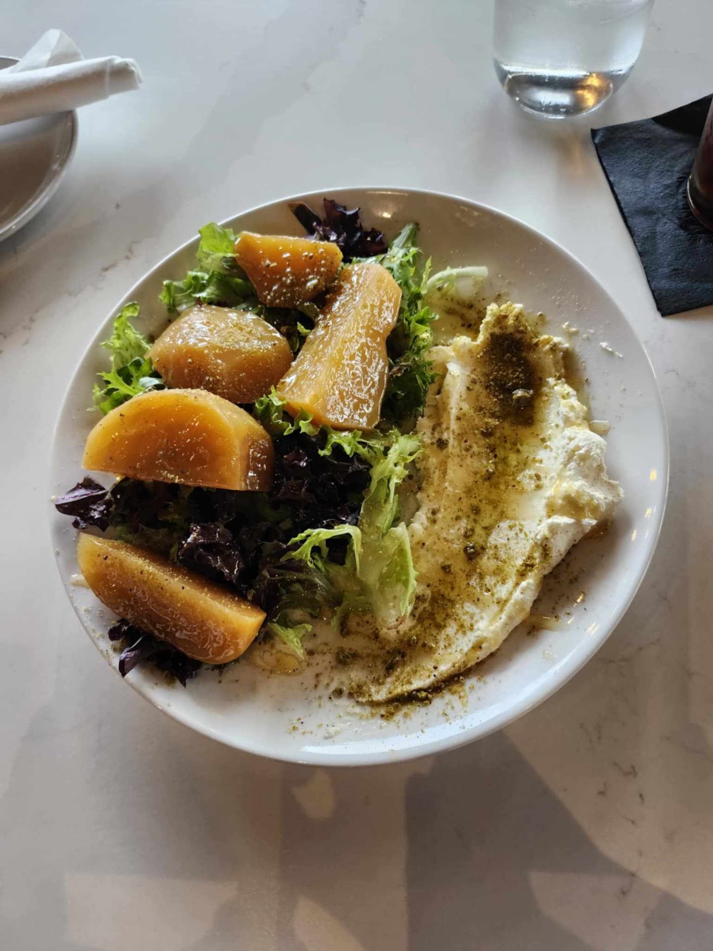 For the appetizer, I had the Roasted Golden Beets with ricotta cheese and honey glaze. The combination of flavors was amazing and could easily double as a dessert—it was good!