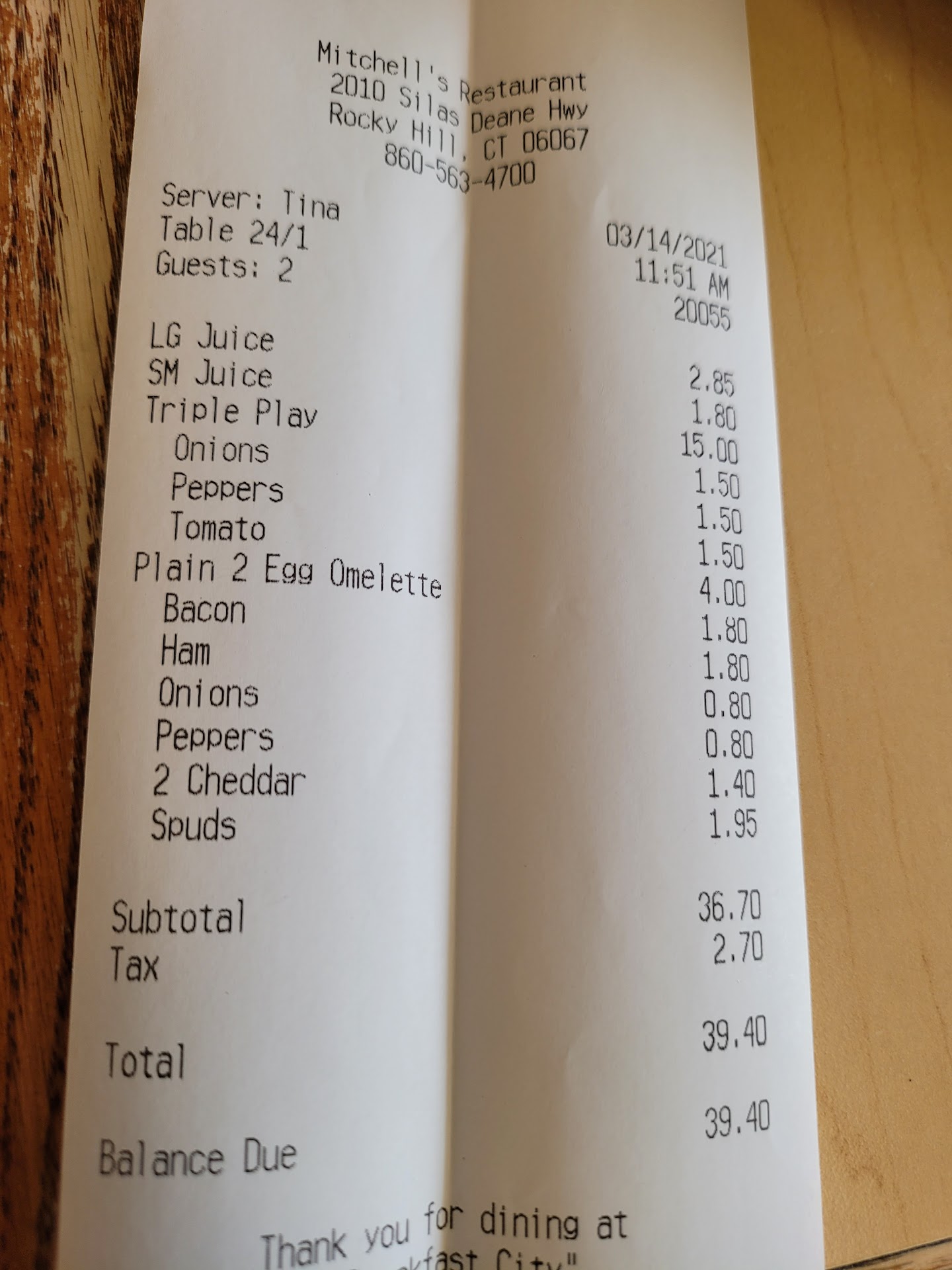 I am writing this review as an Uber Eats driver. Today, I drove from East Hartford to Mitchells in Rocky Hill to pick up an order for a customer. I had never been there before so I wasn’t sure where I was supposed to go to pick it up. Much like most places, I spotted a shelf with the to-go orders and could clearly see the customers name on the bag with his drink next to it. I stood at the counter waiting to be acknowledged as I could see the wait staff was occupied. I knew they could see I was there but proceeded to do other things so I walked to the other side of the restaurant, next to the shelf, hoping someone could just hand me the order. Well the waitress did a double take when she noticed I moved to the other side and then decided to acknowledge me since she was annoyed. I told her the customer’s name I was picking up for and the service I was working for. She told me that I’m supposed to pick up at the counter. I said, “I was over there but was being ignored by multiple people. I understand if you’re busy but I’m just trying to do my job too.”She proceeded to step closer to me and say, “EXCUSE ME?” She had the order in her hands and still was not giving it to me. She then proceeded to say, “you’re getting the tip for this, not me! How about I throw it in the trash and give you a bad review!” So, she proceeded to chuck this man’s order in the trash. I then said, “you’re just hurting the customer, not me”. Her response was, “Uber will just cancel the order”. Unfortunately, this customers order was canceled and I’m sure it set his day off on the wrong note. If he reads this, I tried to get your order to you in a timely manner but this woman had complete disregard for you as a customer and in trying to spite me, ruined your day. I called the manager immediately and told him the whole story. He just said something about customers sometimes getting the wrong orders. He said that he was very busy and he really needed to go and hung up. My suggestion to you is that if you continue to use food delivery services, you need to better support your staff in handling...