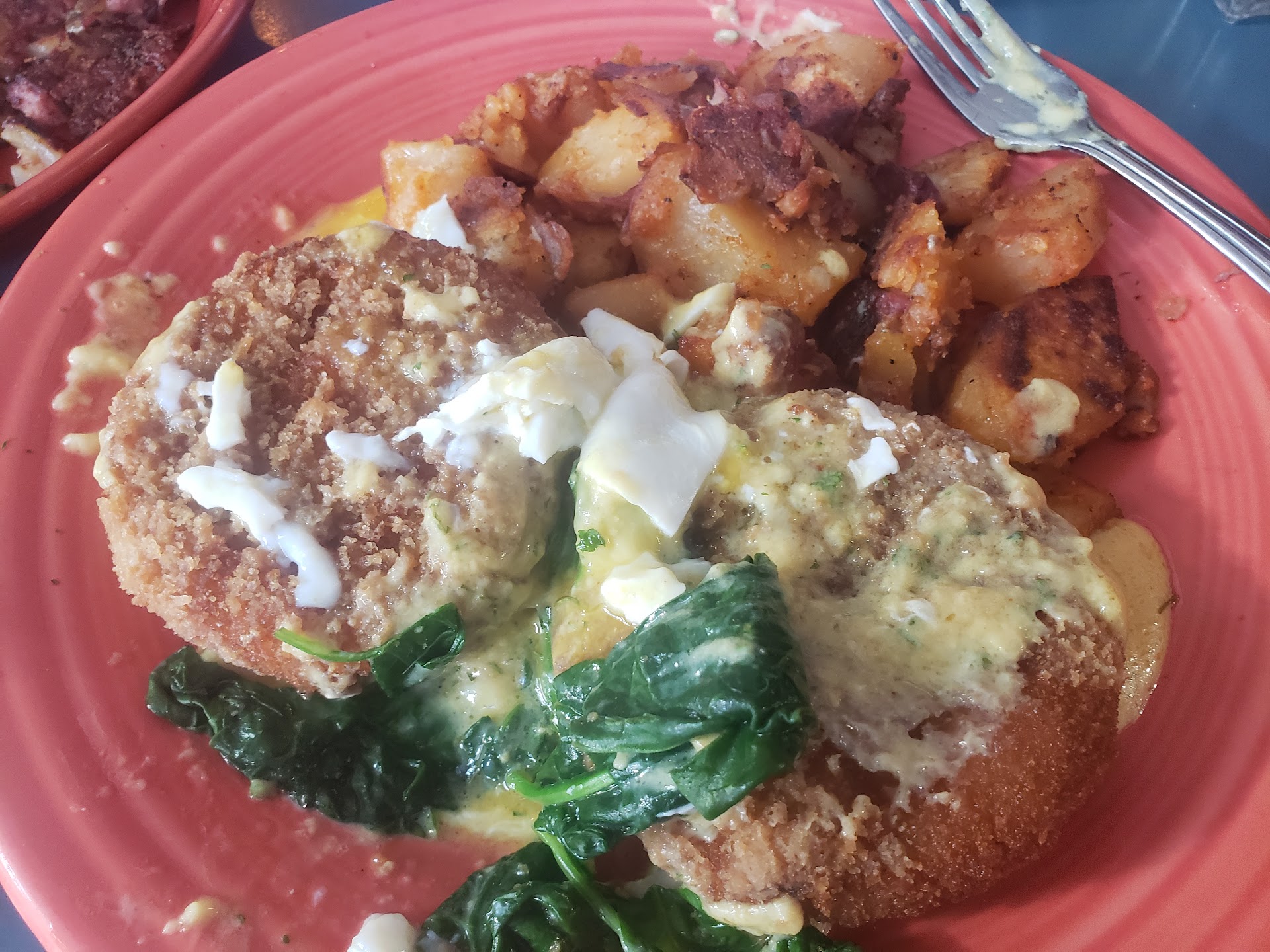 Parties in my two visits had: eggs Benedict, both standard and Irish; corned beef Reuben sandwich with coleslaw; a large fancy salad that I don’t remember the name of, but was fabulous; a specialty sandwich served open face with fries; grilled cheese; egg salad sandwich. A lot of these items I’ve had before, and they are just exquisitely better now.