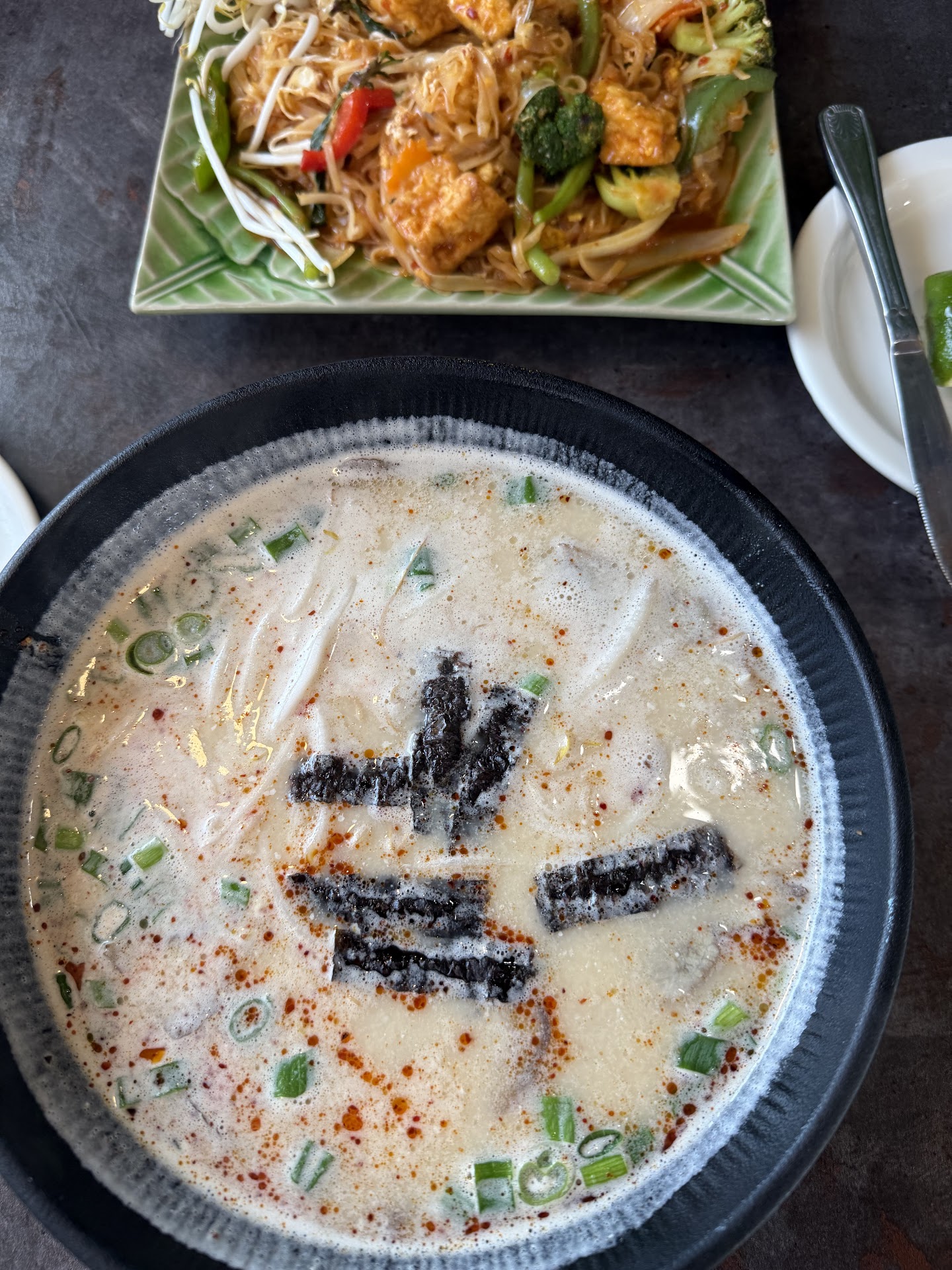 Read moreCame here for lunch at the recommendation of a friend. We came at an off time and were the only customers at the restaurant. I ordered pork ramen noodles, the food was decent, served hot. The pork was very fatty with not much meat on it. I confirmed it was not pork belly. My mother ordered pad thai. It had a very fishy taste and smell to it making it unappealing to eat. We brought it to the waitresses attention and she said that there was no fish sauce used in it despite us both tasting a very apparent fishy taste. She had the kitchen remake it, gluten free style, which meant no sauces used. It was better the second time around. And “as a courtesy” did not charge us for the second dish – as it should’ve been. The waitresses had a change of shift during our time dining. The second waitress was talking on the phone loudly and not paying any attention to us. We had to get up and get her attention to give us the check after waiting several minutes to hopefully get her attention. And we even brought the payment and check back to her to cash out. The entire time she continued to talk on the phone to whoever she was speaking to. I understand we were the only customers dining at that time but as someone who has worked in a restaurant before it was very unprofessional, rude, and annoying to be dining listening to someone else’s full blown phone...