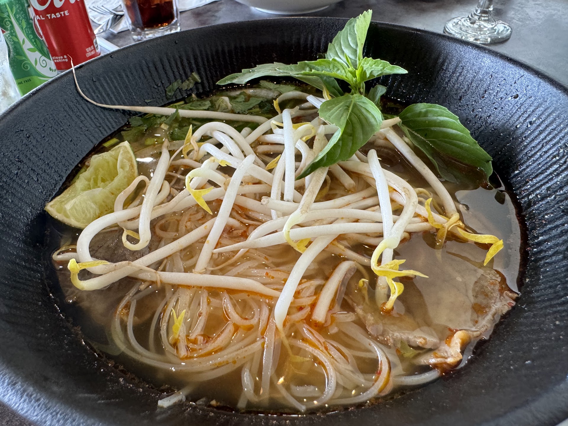 The staff was not present, nobody came to check on us or clear dirty plates. At the very end our water was refilled. Just everything was off. We asked for a pot of jasmine tea, we were brought mugs of some orange looking "tea". I asked for extra jalapenos for the pho, never came. Then when I asked again they brought me an extra plate of basil, bean sprouts and a few extra jalapenos. Even the mango and sticky rice was bad.