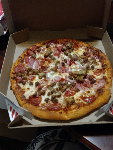 This rating and review is based solely on services received at this specific Domino's store... February 26 2024, I placed order online as a guest for 2 pizzas and an order of brownies. I picked up food after work, went home, then realized about an hour or 2 later when ready to eat that both pizzas were incorrect - completely different toppings from what I ordered. I went back, showed guy at register receipt for what I should've gotten, and showed what I was given. Both pizzas were taken; after about 15 minutes, I was given 2 more pizzas.. Got home, ready to eat, and see 1 of my pizzas were incorrect - again, completely different toppings than what I ordered... Went to Domino's a 3rd time. Pulled up to window, show same guy my pizza and receipt, again. He looks at both, takes this 3rd pizza back from me, looks on order rack, finds pizza I should've gotten on 1st visit. 3 trips to finally get correct order. As a token of apology, he took my name and number, tapped computer keys, and said the next time I come I can get any pizza I want, free of charge. Thanks Domino's!