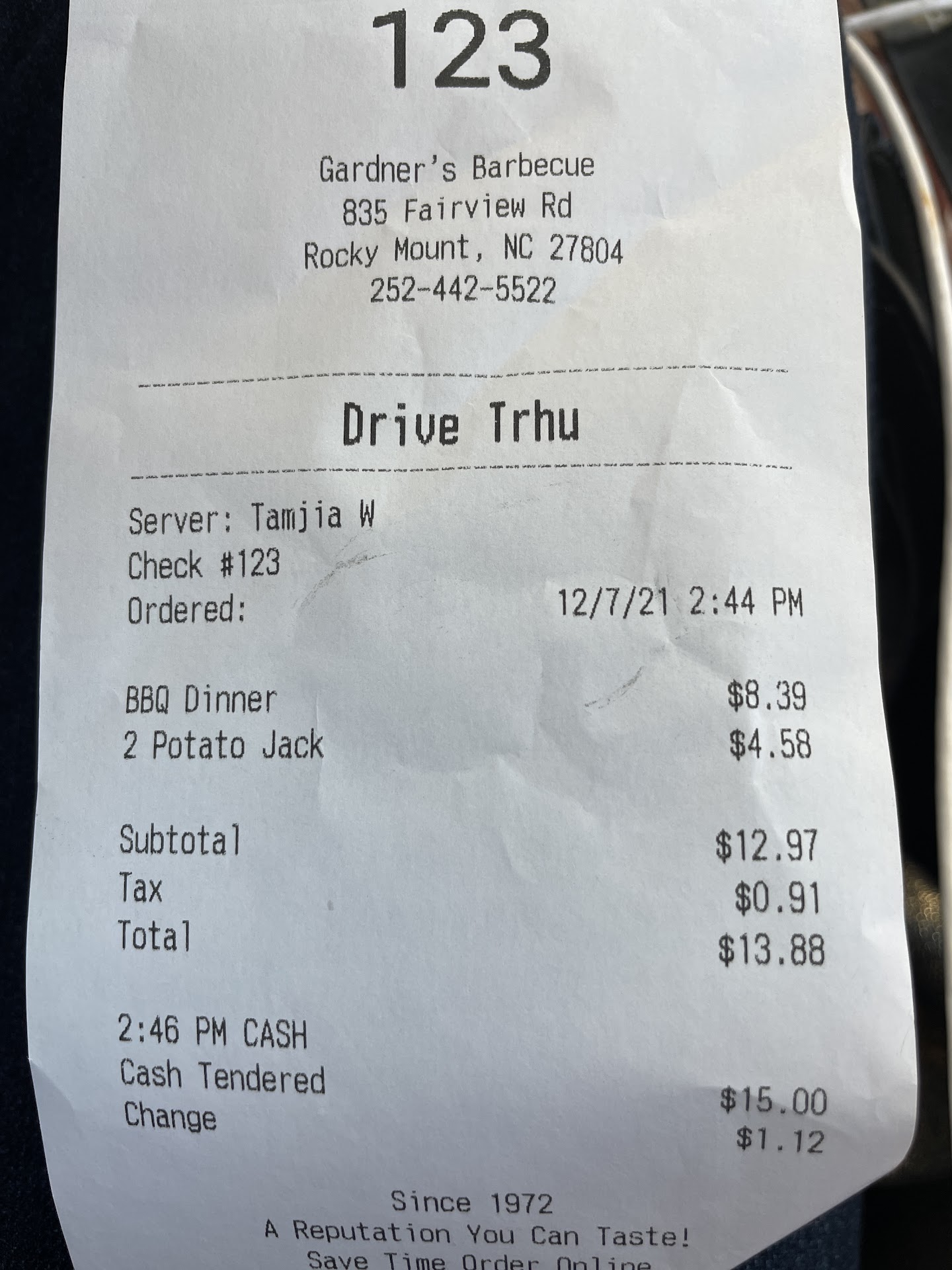 Read moreNot very good. Was asked to pull around to front, then someone came out & told me they did not have chicken breast as ordered & would I take wings. Then I was told it would be twenty minutes before chicken breast would be ready. Then the girl came out & said they did have breast to fill my order. Upon receiving my order, which was wrong. I did not have my bar-b-que & sweet potatoes pie. I had to go back inside, then was told they had to cook my sweet potatoes pie, which took another ten minutes. I have not eaten at this location in a long time, because the service is never what it should be. I thought I might try again, but will not try anymore. After all this time I spent trying to get my order the food was cold by the time I got home. Much improvement needs to be administrated at this location. I have encountered other problems in the past at this location, but will not go back. A...