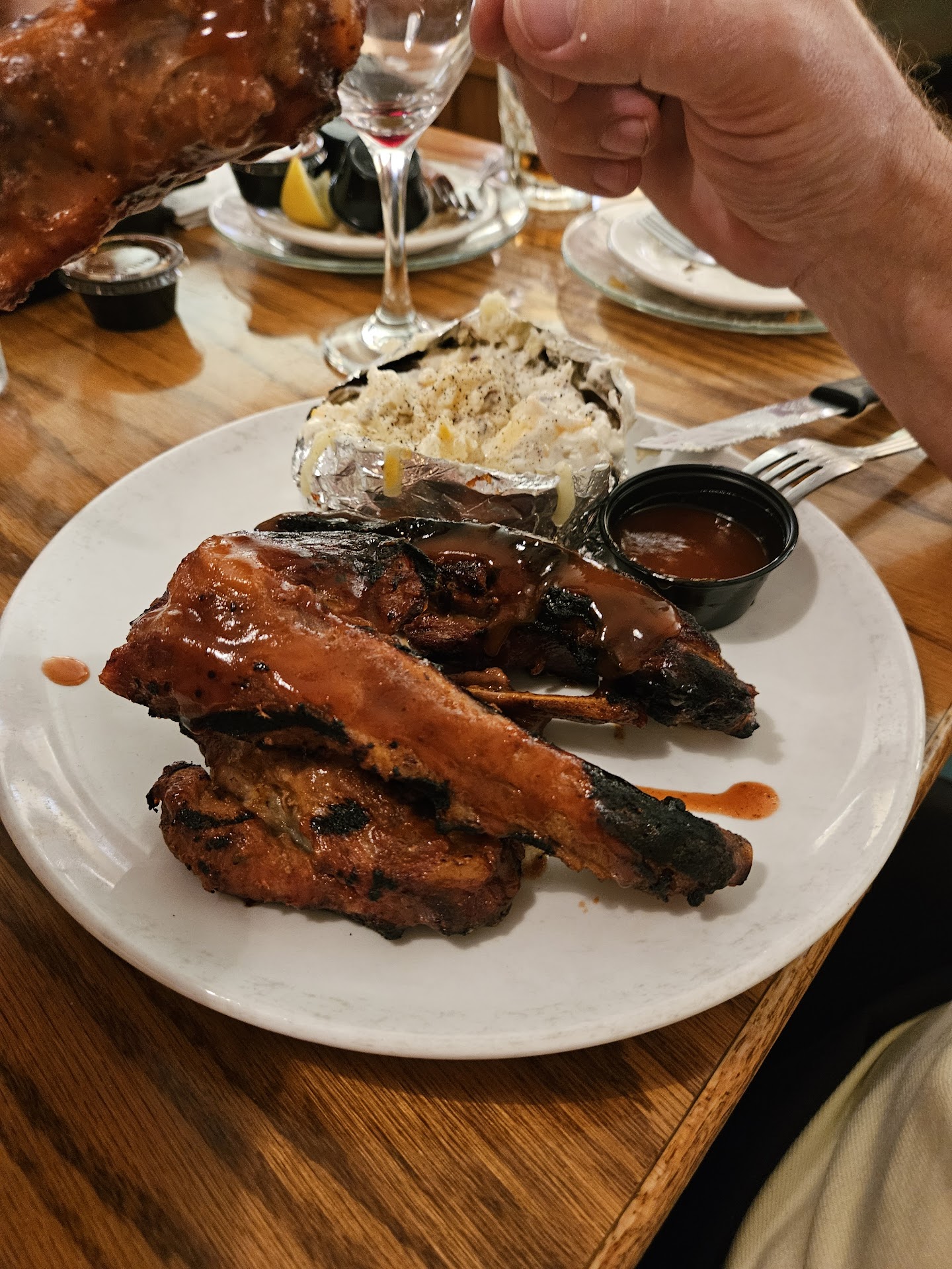 Read moreSince moving part-time to the Moneta area, we have been visiting different restaurants, often with our new neighbors who have been here for several years. The past dinners have always been around the lake, but this time, we ventured to one of their favorites, Ippy's in Rocky Mount. Just a 25-minute ride from our homes, Ippy's reminded me of restaurants we had dined in when we lived in NJ. A large hostess desk, a large bar behind doors to keep the noise from the dining room, an area that was split into spaces so it could have booths around the walls and some tables in the middle. Our friend had mentioned their ribs several times, so there was no way my husband was going to order anything else. I went in thinking I was going to get Smothered Chicken only to hear, "I'll have the Prime Rib," come out of my mouth. But first, we ordered a couple of appetizers - Spare Rib app and Stuffed Mushrooms. The mushrooms were the biggest disappointment of the meal - button caps with barely a bit of crab. Ted did order the ribs, and in his words, the ribs were not the best he ever had, but they were very good. They were tender and moist, and the sauce BBQ sauce (vinegar based) they used was tasty. My prime rib was a decent sized piece, maybe on the slightly thin side. We both had baked potatoes that, while not the huge size in steak houses, was a perfect serving. Our friends ordered Stuffed Grouper (it was stuffed with a whole crab cake!) and sirloin steak. The onion rings with the steak were fabulous. We all had side salads. As with many service industry based business's, Ippy's has been having staffing shortages. Though we were immediately seated, our waitress, Tyler, was running ragged with a large party and several tables. She did a great job checking in and getting the few items we requested. Ippy's will be a restaurant we will return to. And next time, I will get the...