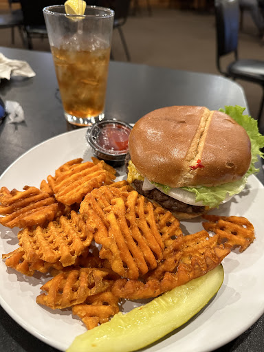 Party of 2 stopped in for the first time while passing through the area about 40 minutes before closing. There were 3 other tables in the whole place finishing up their meals. Service was terribly slow, we waited 15 minutes before our drink order was taken. I never received silverware and there wasn’t enough on the table, we ordered burgers and they never asked how we wanted them cooked, we had to call her over after about 10 minutes of not seeing her to ask for one cooked well done, they assume everyone wants medium rare. My burger had one of those long toothpicks in it sticking out of the top, my hubby did not have one. No problem. The burger buns are pretty thick so we cut ours in half to eat it easier. After eating one half, he went to grab for the 2nd half and saw a big ole toothpick sticking out from underneath the burger and the lower bun. After the waitress finally came back over she had the check ready as they were now closed, and we showed it to her. She immediately asked if he wanted a box and of course we said no, he didn’t know what kind of toothpick that was or why it was on the bottom so he didn’t want to finish his meal and I don’t blame him. Who knows what happened there, so she said ok, I’m sorry I don’t make them and became defensive. Then offered to make another one or take it off the check. We said take the $10 off the bill please. She asked if she could take it to show the cook and tell him what he’s done.. we said sure. She then came came back putting her fingers all over the sand which and explaining to us that it wasn’t underneath and he must have cut into it somehow. I’m super shocked that anyone had the audacity to insinuate he was lying and then attempt to physically show us while playing with the food, how they thought it couldn’t have come from underneath the burger. Smh, we said just give us the check, we weren’t gonna argue over a little funky ole $10. Food was mediocre. Service...