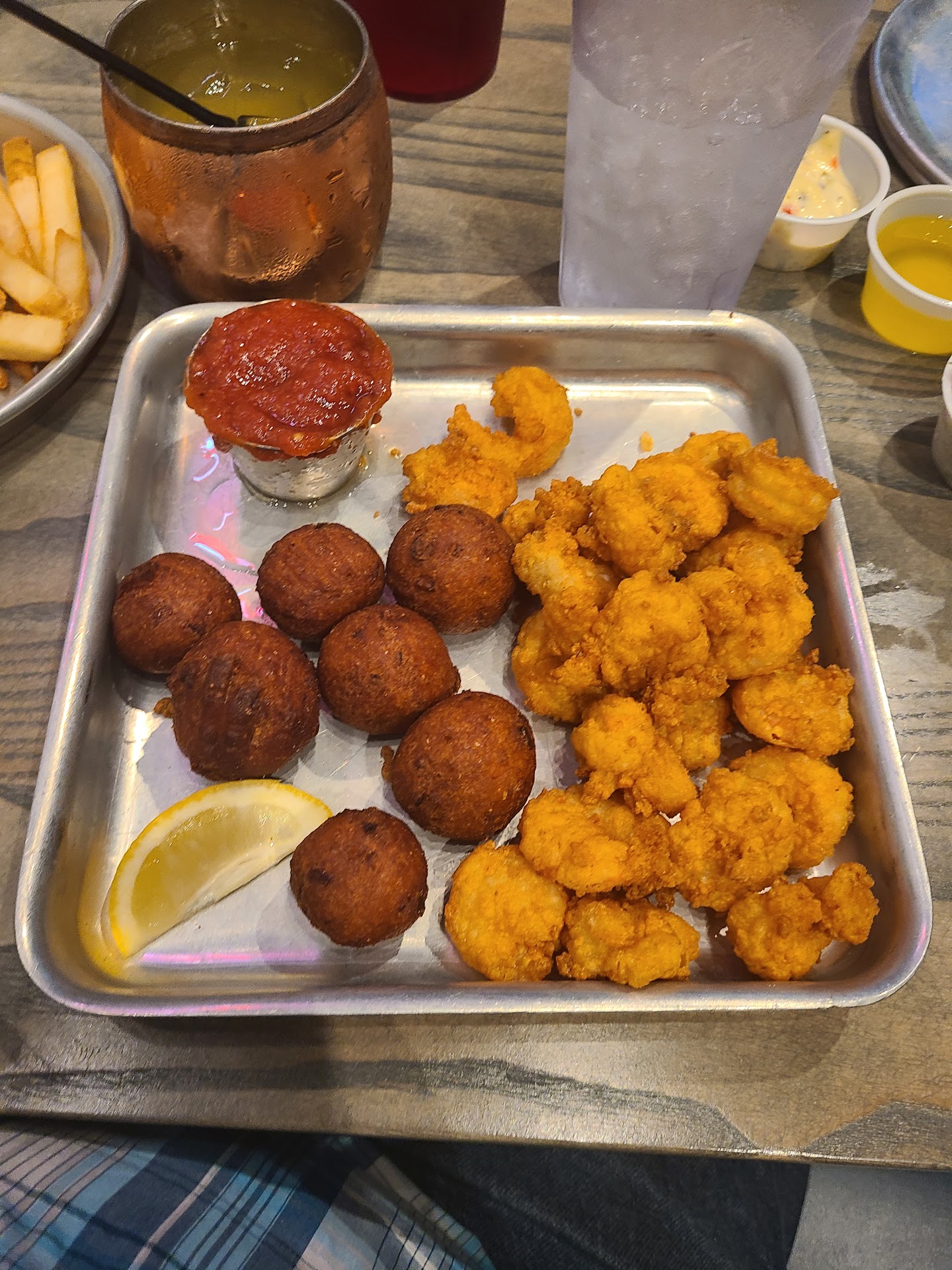 Read moreGo to TasyCrab for bigger portions and seasoning on your food. The fungswae of the entire establishment hasnt been the same for about a year now. The quality of food has progressively gotten worse and the vibe of said establishment does not match that of its employees. There used to be an atmosphere of fun welcoming energy but now it's not as inviting. If they didn't host indoor/outdoor entertainment I'm convinced they wouldn't last. The owner has multiple stylish fancy vehicles but refuses to accommodate his employees with a raise for the work they do resulting in a super high turnover rate accompanied by not so favorable work conditions and in the same hand causing quality to go down as well as sales. There's an obvious disregard for what matters and because of that, there's a neglect of the guests that comea in to dine. Undercover Boss would be great for them. The lack of structure is unsettling and the location isn't all that ideal for a beach spot waterfront type of dining establishment. The decorations and country music just doesn't scream SHUCKIN SHACK. It screams attempted captilization of a vacant building in a falling city rivaling Tasy Crab and Red Lobster. Objective wise, decent move. Longevity wise not so smart and I don't imagine them lasting another...