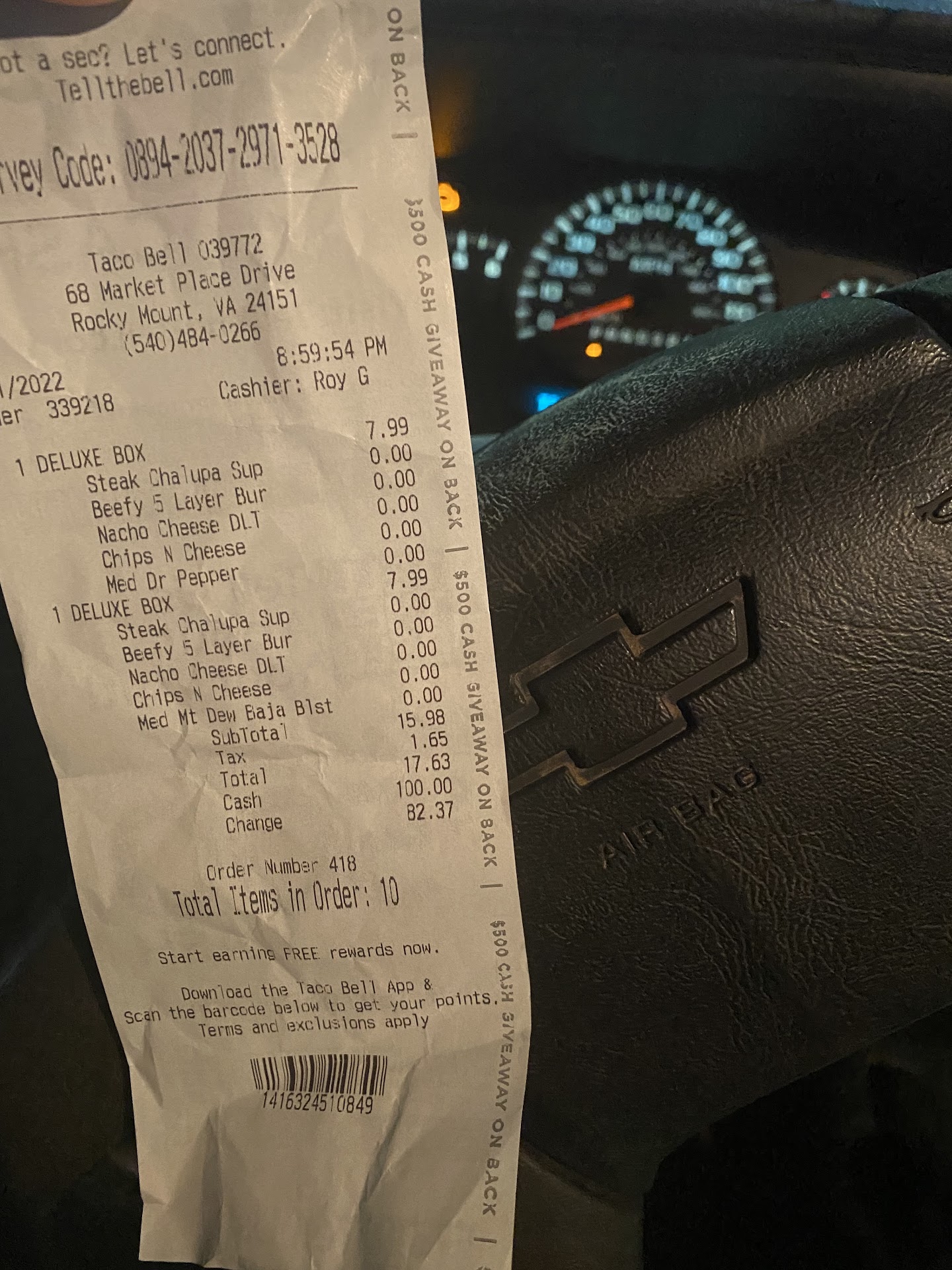 Read moreOrdered thru app while in the pool. Waited 45 minutes. Get to destination of disappointment. No one in drive thru. 1 person inside. Only 2 cars in lot. Pull up and told it’s not ready, can I pull around. Wait another 10 minutes. Guy comes out tosses 2 bags at me and says have a nice day. Didn’t wait to see if order was correct. Order was not correct. Called out window, guy could not be bothered. In extreme hurry to get back inside. Did I mention I came from the pool. Not dressed for getting out of car. That’s why I chose drive thru. Have to go in for sauces. Clearly listed on all bags tickets. Not a single sauce given. Had I pulled up to drive thru would not have had to wait 45 minutes. There were 6 people working inside. There is no excuse for the wait, the order being incorrect or the rush to get back inside. I have lived in 7 states. Visited more than 20 states. THIS IS THE WORST TACO BELL IN THE UNITED STATES. The food was terrible. The service is horrible. Entered the survey to explain my experience and couldn’t even receive an apology for the horrible service. The national chain should shut down this location because the management and staff are a blight upon the rest of the...