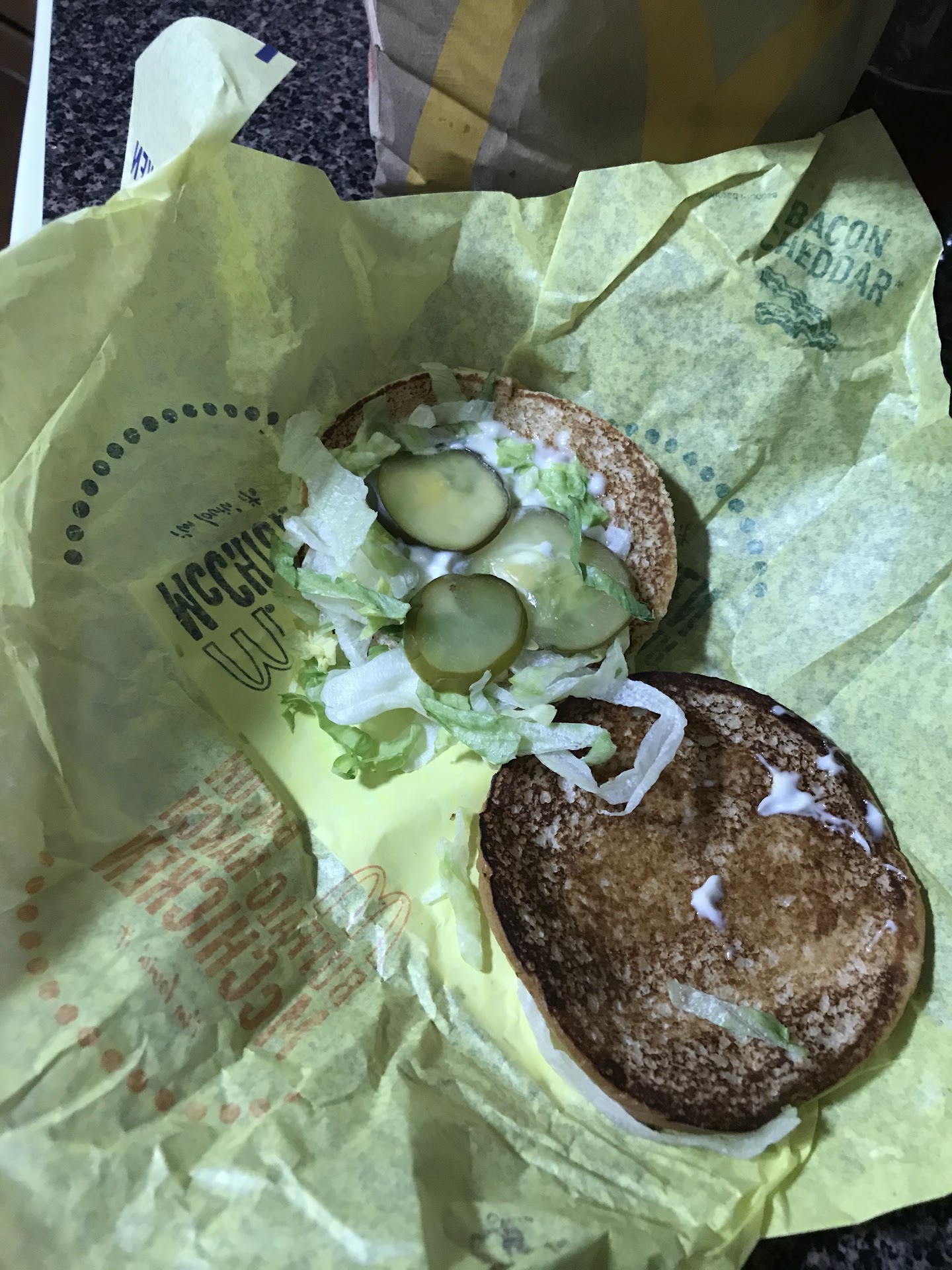 Everything remotely close to the self serve drink dispensers was sticky. The floor, the counter the napkin dispenser. Old spilled soda, straw wrappers and discarded cup lids were strewn everywhere. While i was filling our drinks an employee came over and checked if the napkins were full and completely disregarded the almost dry spills and trash everywhere. When we ordered we asked for everything to be made fresh. We waited close to 10 minutes for our order which wasn't an issue because we had asked for fresh. I picked up my order went out to my car, popped a french fry in my mouth and it was barley even warm. Definitely not fresh. Now I'm puzzled what the 10 minute wait was about. I now went to the drive through and explained what happened and asked to get actual fresh fries. The manager did okay. I pulled up to the window and not exaggerating there were 5 employees standing there staring out the little window at us like we were aliens. I'm not usually one to send food back but when you're paying so much money and waiting so long I expect to get...