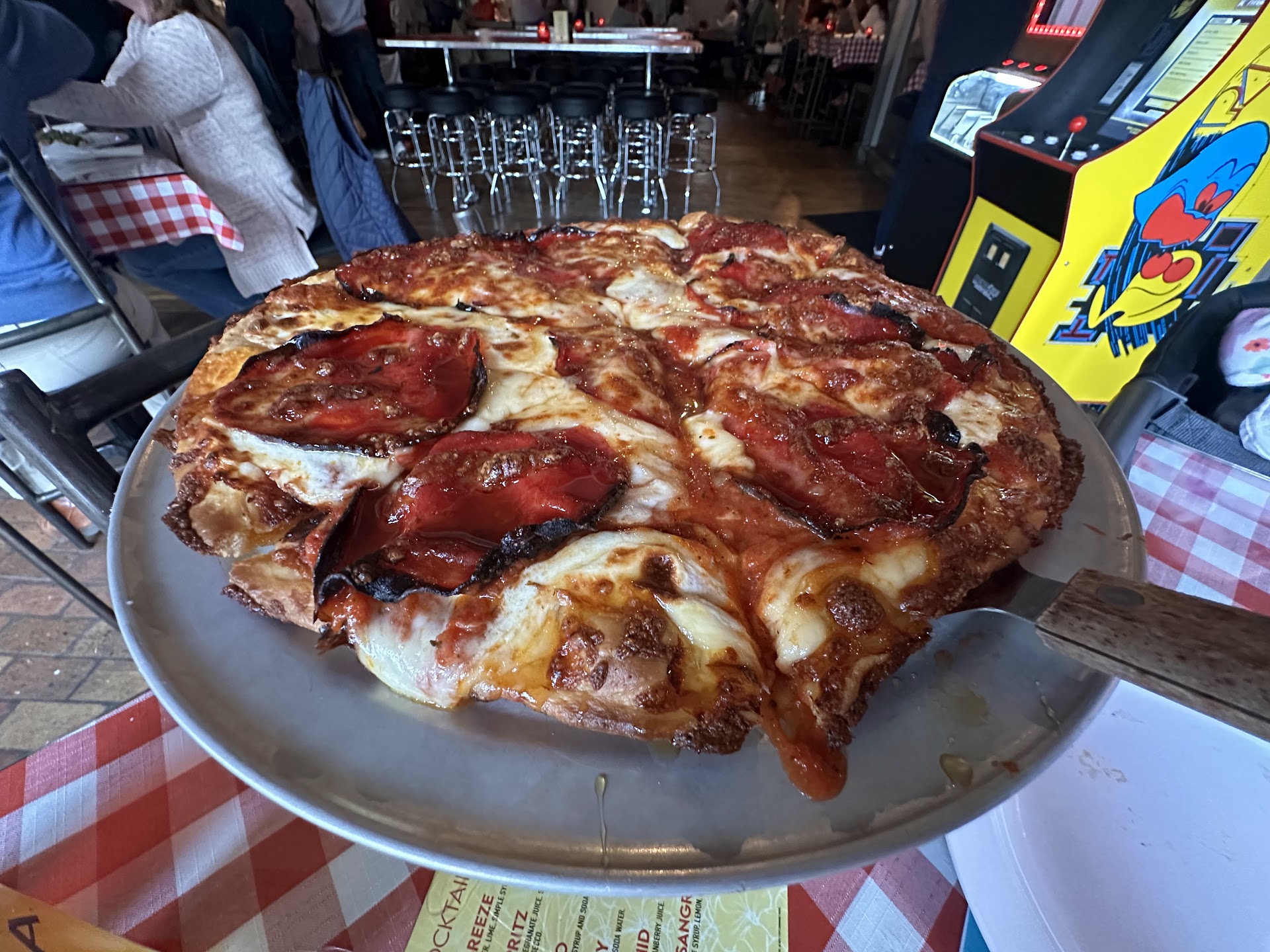 Old review: Pizza was a bit of a miss for me. Wasn’t cut well, very greasy, and I like more of a crust. But go try it! My wife loved it!! Also the environment is welcoming to anyone and everyone. Great beer selection and the wings are great. I’ll be going again.