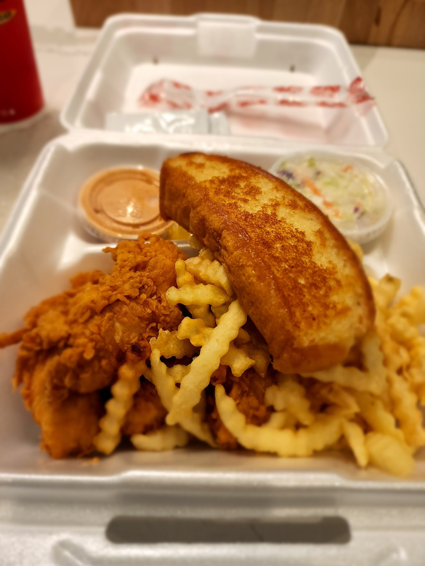 I love canes. Ok I really like the chicken and sweet tea and bread. It’s pretty much all they have. It’s so good though right? Every time I come here the fries are either soggy or crispy- there’s no in between. Same goes for the chicken. But I still like to come here the food is delicious and it fills me up. So when I decided to come here for lunch it was no doubt that the food today was going to be either soggy or crispy. I was fine with it. I get home, open my box. The Bread was a little more crispy that usual but it was fine I didn’t care. So I’m sitting at my table, ok, eating my food. I feel something in my mouth. I thought it was a piece of fuzz. No, no, no. It was certainly not a piece of fuzz. It was a long black piece of hair. My hair was tied back into a pony tail. I checked my clothes to see it it was mine. But there was no way. I was disgusted, disappointed and dissatisfied with my food. I placed the long black piece of hair on to the table and I kept eating. I had to. Right? I mean when your spending $10 on a box of 4 soggy or crispy chicken tenders, and soggy or crispy fries you feel like you owe it to yourself to keep eating it. My food today was tasteful, but it was not worth the price. I have worked in the food service and I understand that these things happen from time to time. I am not angry with my order today, because I understand that working in the food industry is not for the weak. But I would like Rocky River Canes to improve the quality of their chicken, fries, and bread. Because fast food should not only be worth the time, but it should be worth the price (especially if you’re paying $10) PS- please take your time with brushing your hair and putting it back. Because neither of us want a long black piece of hair to end up...