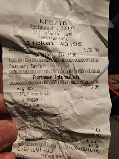 Read moreIf this is the KFC in oak ridge the head up people need to fire everyone in there they don't do there job you go in there smell of pot they play loud music and I set in the drive threw for over 35 minutes to pick a order up for door dash and when it's finally my turn to order they will tell me Everytime too this happen to me multiple times now there out of dam chicken I mean come on now how that possible and there a young girl in there trying to work the cashier station and drive threw and cook while the other 2 or 3 workers are out side smoking cigs for 35 mins or longer idk her name she deserves a metal I know she can't be more than 17 but she great but without help she can't do anything for anyone so other than that there might crue needs to all be fied asap all besides the girl idk her name but bless...