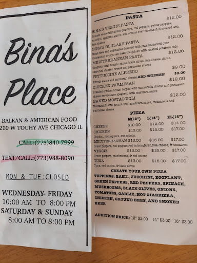 Overall Thoughts: Bina’s Place is a small family-owned restaurant serving up delicious Balkan food— truly some great quality grilled meats. The interior is decorated very simply with tables against the walls seating ~4 people each. When we came in at 6:30pm on Sunday, it was pretty empty and they were unfortunately out of most desserts (they stop serving them by 7pm). The server/owner was super sweet, and the food came out pretty quickly. The prices felt very reasonable for the quality. When I’m back in Rogers Park, I’d love to come back to try more of their menu!
