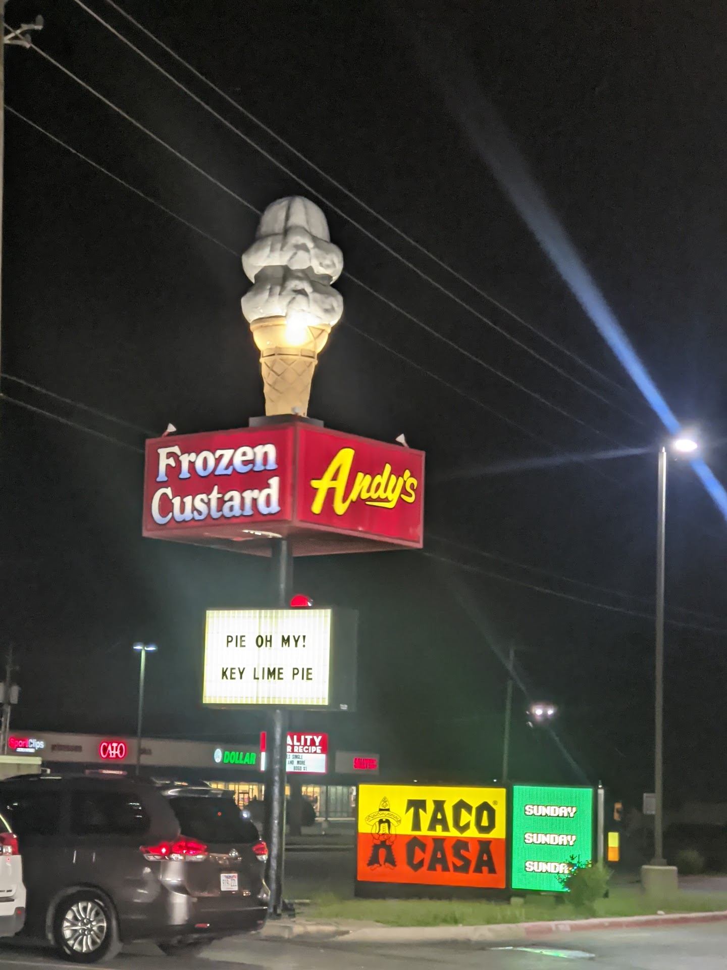 Read moreWe have been to this Andy’s in the past and had great experiences. We waited almost an hour to get a malt and a concrete. We usually go to the closest one to us in Conway. Tonight, they must have been having an off-night. There were plenty of people working, but it was extremely disorganized. Orders were coming out in no apparent sequence. No one could hear the people calling out orders because the music was so loud. The people calling out the orders were the same ones taking orders Ann’s not using the 2nd window to hand out orders. These folks need a coach. Also, no one was wearing gloves and the guy pouring the cream into the machine put his bare fingers on the inside of the bucket. The kids were touching their ears and faces and going on to make ice cream. Sorry to be so negative, but I love Andy’s and this experience almost makes me not want...