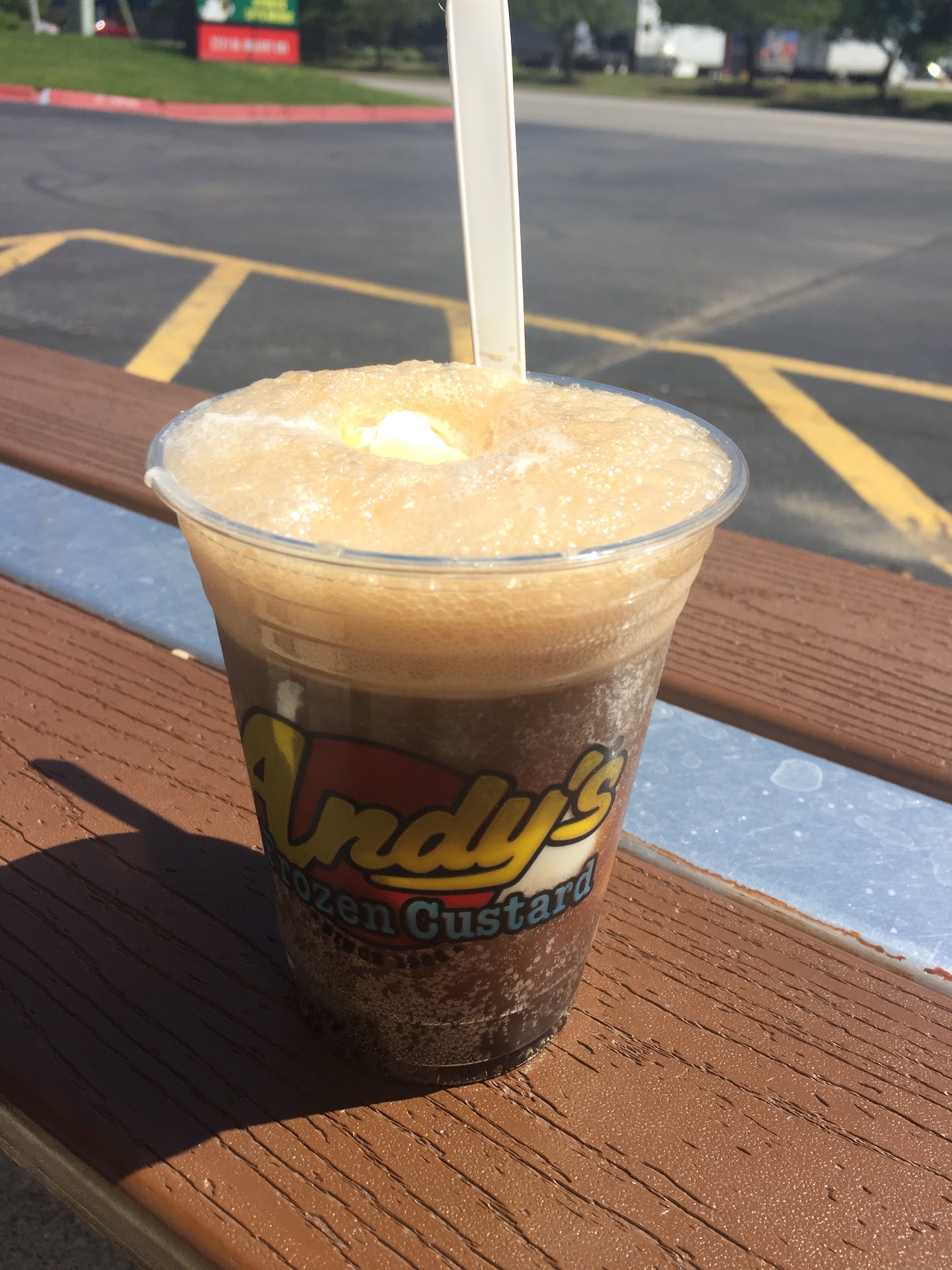 Great custard .Seasonal foavors.Try blueberries, strawberries, bananas. TRY IT WITH PEANUT BUTTER. Chocolate, vanilla, hotfudge,caramel or a variety of different ingredients and flavors. The turtle is good as well as the jackhammer chocchocolate and peanut butter mixed with some hot fudge in between the 2 layers of concrete goodness. YOU really cant go wrong all made as you order it with a friendly staff and great customer service to help you get your family and friends some amazing custard.You can walk up and order what you want or can go through the drive thru where a employee can get you your custard and take your order.Fayetteville even has a walk in Andy's on MLK boulevard where u can go in and orders well as some points and quarts of your favorite flavors frozen and available to take home to enjoy with your family.Please try Andy's if you haven't with multiple NWA spots you can walk in walkup to drive thru it order ahead and pu.You will not be disappointed in your...
