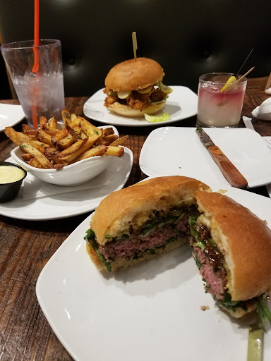 The food suuuuucked. I really wish I could put it nicely, but I just really wish I could get my $90 back. We are a family of good eaters, yet to my surprise: not one happy plate. Appetizer: fried pickles. Through out an entire hour long meal, never cooled to an edible level. Breading fell right off, left my mouth in pain. I imagine that’s what it’s like to eat lava My fiancé: had a burger, he said “it’s okay, I guess” ate half of it. Also, wasn’t aware that a $17 burger wouldn’t come with fries. I didn’t order with my ‘entree’ but he let me eat some of his and they were stale and cold. So, glad I didn’t pay to add fries to mine. My entree: the black bean burger. I am a vegetarian, and I constantly seek options to satisfy everybody’s needs. In this particular instance, we were celebrating a new house. The black bean patty was flavorless. Additionally, I asked for my burger to be made extra crispy because if not made correctly, veggie burgers turn out mushy. It’s unappetizing. Lo and behold, a mud pie. Cocktail: the lavender haze. Decent flavor. Far too expensive to pick lavender seeds out of my teeth the rest of my meal. Pretty. Pretty but gross. My step son: kid’s burger: he took a bite, said ew, and spent the rest of the dinner ripping his menu into tiny shreds. I don’t normally write reviews, especially not long winded ones, but this restaurant...