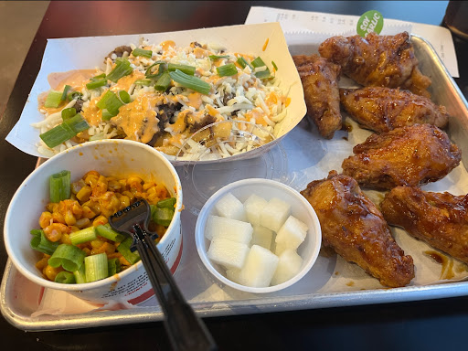 The food took a little time to come out, but honestly, you can tell they make everything fresh because it was incredible. I got the half and half mixed wings (half KBBQ, half soy garlic), MoPo dogs, street corn, and bulgogi fries. Every single thing was bursting with flavor. Where has this kind of chicken been my whole life? I wish I had taken pictures for this review but didn’t think about writing it until after I ate because we loved the food so much!