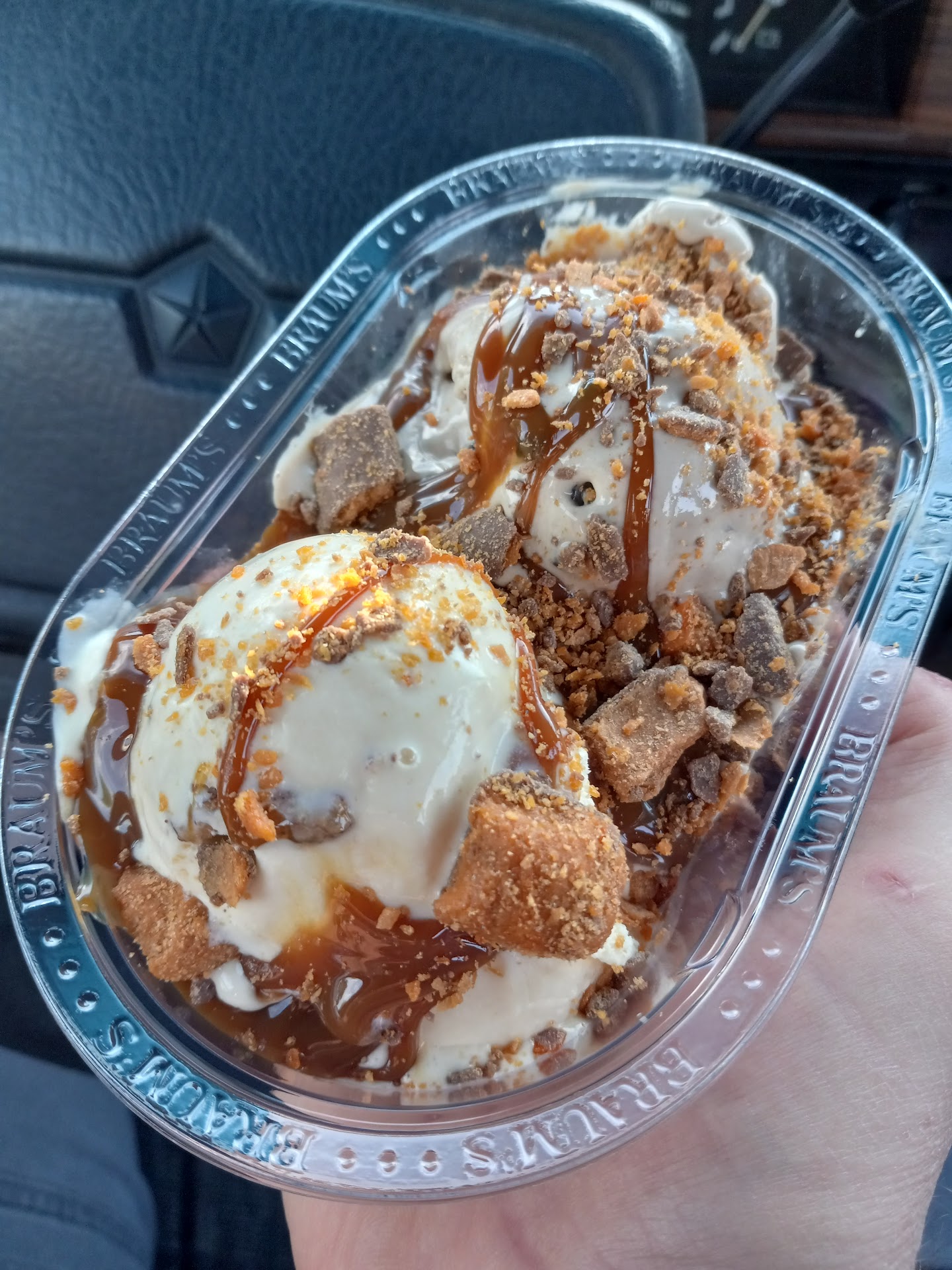 Read moreBraum's is amazing. So here's the story. Braum's is a local ice cream parlor that, unlike anywhere else, has its own creamery. Their own cows. It's amazing. Their ice cream is sheer perfection. It tastes very fresh (thank you, cows) and they're constantly adding in new flavors and bringing back those seasonal favorites. In addition to the ice cream parlor, there is a fast food restaurant. I haven't eaten there because I have had a couple bites of their burger and it was o...k. It tastes like a fast food hamburger. That didn't deter me at all, however, because the ice cream is my addiction and the reason I walk into the store or pull my sweet minivan up to the drive-thru window. Their staff is also very kind and helpful, and often go out of their way to make sure their customers are 100% satisfied. Whenever I've ordered milkshakes, I ask for them to make it super thick and they never disappoint. Sometimes it's 10 minutes of working the straw to get anything. YES! AND, unlike Dairy Queen, they don't throw on extra charges either. You know the ones. You don't notice it until you're driving away and you start thinking, "Wait a minute. How was that $8 for a milkshake!! OH Dag-nabbit! You got me again Dairy Queen!!" Another plus is that they have a small grocery store inside of their restaurants and it's super convenient to run in and grab whatever you're out of (instead of trekking 10 miles for a gallon of milk when the dog's in the backseat). Speaking of milk, theirs is glorious. I know. That's probably the oddest thing I've typed in a week, but I can't help myself. It actually has a creamy flavor and doesn't have that tasteless, watered down, and slightly gray color like grocery store milk. Finally, be on the lookout for their signs as they advertise the specials and quite often they have 2 for $6 ice cream tubs. Sold! All in all, Braum's is great and it's even better that it's right here in our...