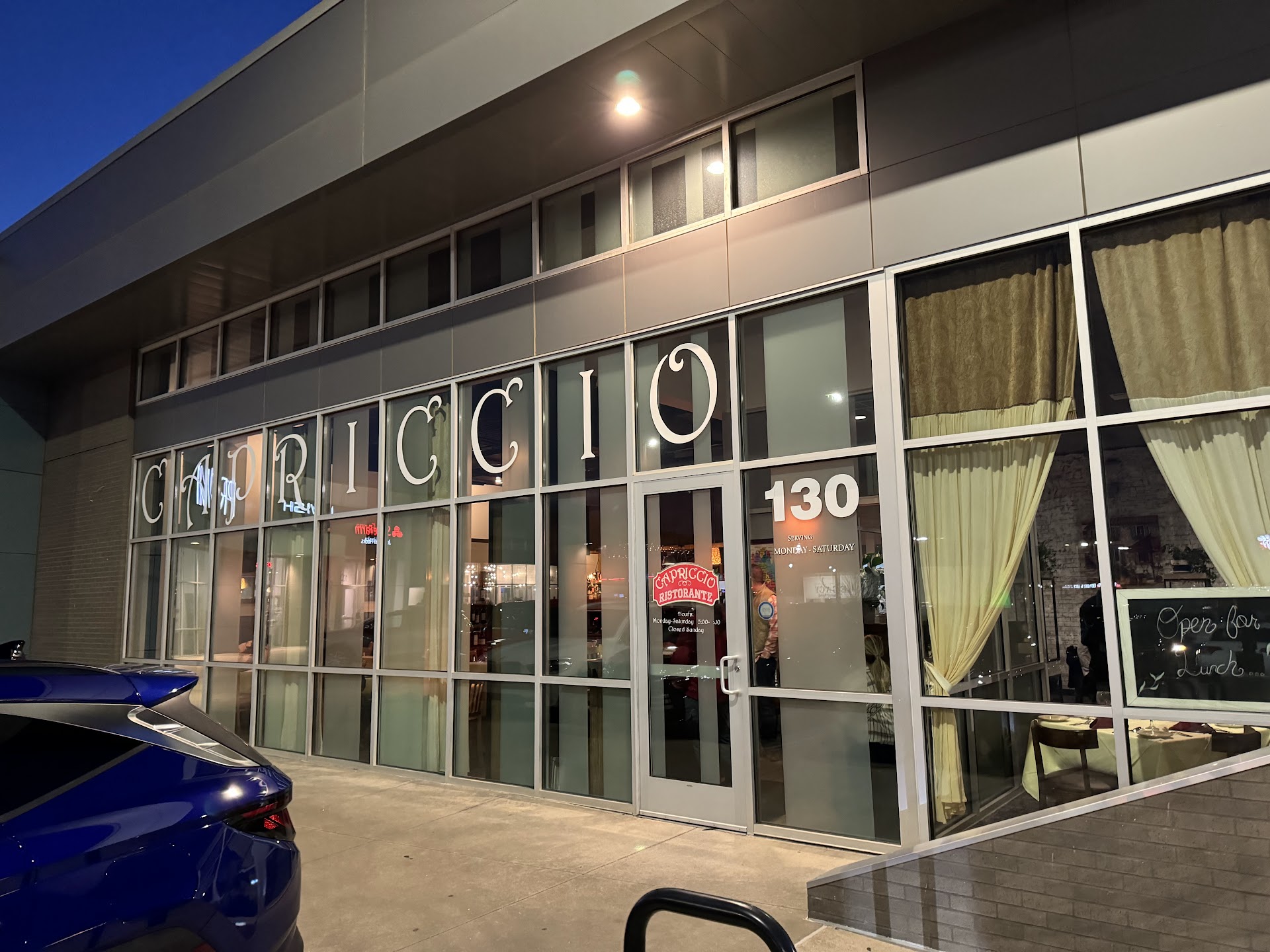 Read moreFrom the moment we stepped into Capriccio, we were enveloped in a warm and welcoming atmosphere that set the tone for an unforgettable dining experience. Despite a bustling dining room, we were seated promptly, which was a pleasant start. Although it took some time for our server to take our drink orders, approximately 30 minutes, this minor hiccup did little to dampen our spirits, thanks to the cozy ambiance that Capriccio effortlessly maintains.