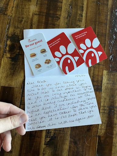 Read moreChick-fil-a will always correct their mistakes even if on occasion it is beyond their own protocol. It's annoying when you clearly communicate you want a sandwich with NO PICKLES and no lettuce. Then the happy cashier at the window tells you you got what you asked for. So, trusting the info, you bite into the sandwich and discover someone poisoned the sandwich with a foul vinegar laden nasty troll tird. I've had this experience before. In some cases they put the troll tird on the sandwich and then read the special instructions. So then they take the troll tird off the sandwich as if they've done the right thing. I use the term troll tird to try and convey how foul this nastiness is to me and many people I know. Maybe this is a rare occasion for chic-fil-a, but it happens to me 50% off the time when I eat at the place. Maybe there should be a cow stepping on a troll in the back office/kitchen during training so people understand a troll tird removed from what was once a good sandwich destroys the sandwich. They did make it Wright and take me me sandwiches that were indeed troll you're free. However, I had to grove back and forth to the store. Time is money. Wear and tear on my car is money. Though worse than that, the nasty smell in my hotel room of a troll tird. Even more so is the foul experience of having bitten into a troll tird. No some of you may be offended by my description. Hopefully, more of you are laughing. More importantly, I hope you stop serving troll tirds to people who are...