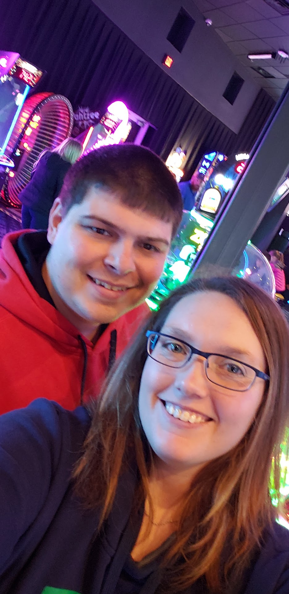 After we spent most of our credits we decided to grab some food. The location of the table wasn’t great but waiters/waitresses seemed sparse. The games were extremely loud (obviously), but the tv’s were so loud I couldn’t hear my fiancé who was sitting right next to me over everything going on.