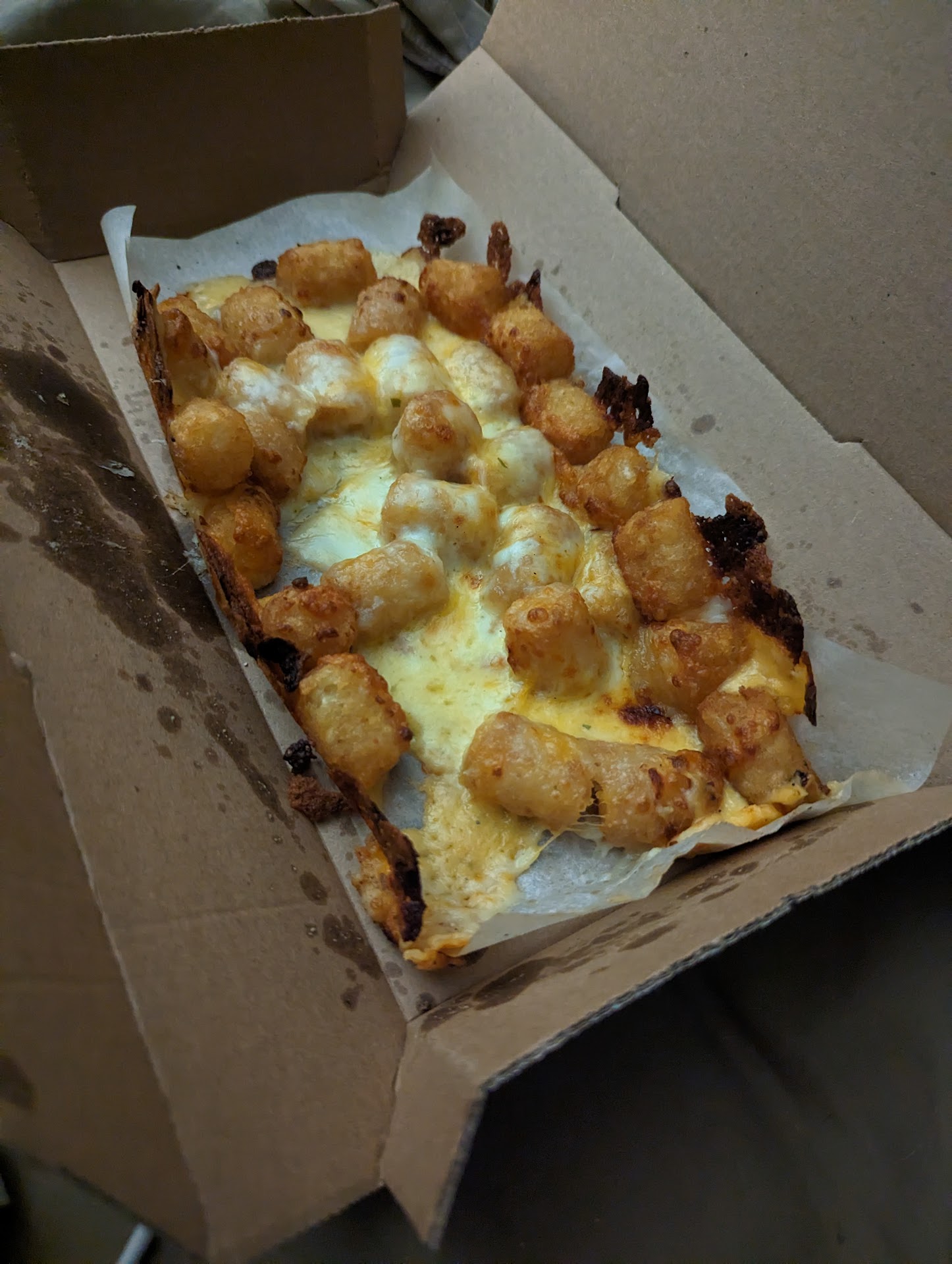 On May 25th, 2023 I ordered 3 cheese tater tots on the Dominos app. When I arrived for pickup there was a Dominos delivery driver in a maroon older SUV that arrived right after myself (had no yet turned my car off to go in). That was driving very fast and carelessly through the parking lot (tires screeching) with music at a extremely high volume. A male exited wearing a Dominos uniform that looked extremely dirty and left the music on blast why he went in to collect another delivery. When he returned to his vehicle with his next delivery in hand he tossed it into the back of his SUV jumped in the driver's seat and left speeding across the parking lot (exactly the same way he had pulled in) . I retrieved my order brought it home opened it up and was extremely disappointed with the very few tater tots and burnt cheese, with very little cheese also. I have ordered this in the past from other locations and none of them were as horribly made like the one from this location. I definitely won't return to this location again, I feel like this Dominos needs someone to come in and get things sorted out, like a manager needs to be aware of how the business is...