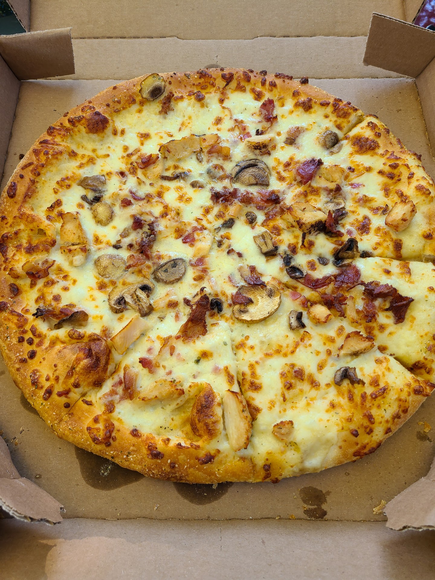 Read moreReally wanted a salad... My kiddo wanted pizza. Just spent all day in the ER with my fiance. We are hungry and tired. Our car isn't running well. I order pizza, pasta, salad and a two liter online.. Everything gets here fast and looks good EXCEPT.. I realize too late (after tipping the driver like $5) that the driver let without my dressing. It's not just a garden salad either, it's a chicken Caesar salad and we don't have any dressing here. Like none at all.. HUGE DISAPPOINTMENT..