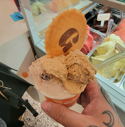 We ordered pistachio, hazelnut, and Cookies n Cream. The texture was fine for all 3. The pistachio was my favorite and had sufficient pistachio taste to it, but the Hazelnut wasn't as strong a profile and had an odd after taste. The Cookies n Cream didn't taste like Oreos the way Sonic tastes like Oreos, but I guess that's why they call it "Cookies n Cream". They're topped off with a tasty washer biscuit that provides a nice crunchy contrast to the velvety gelato.