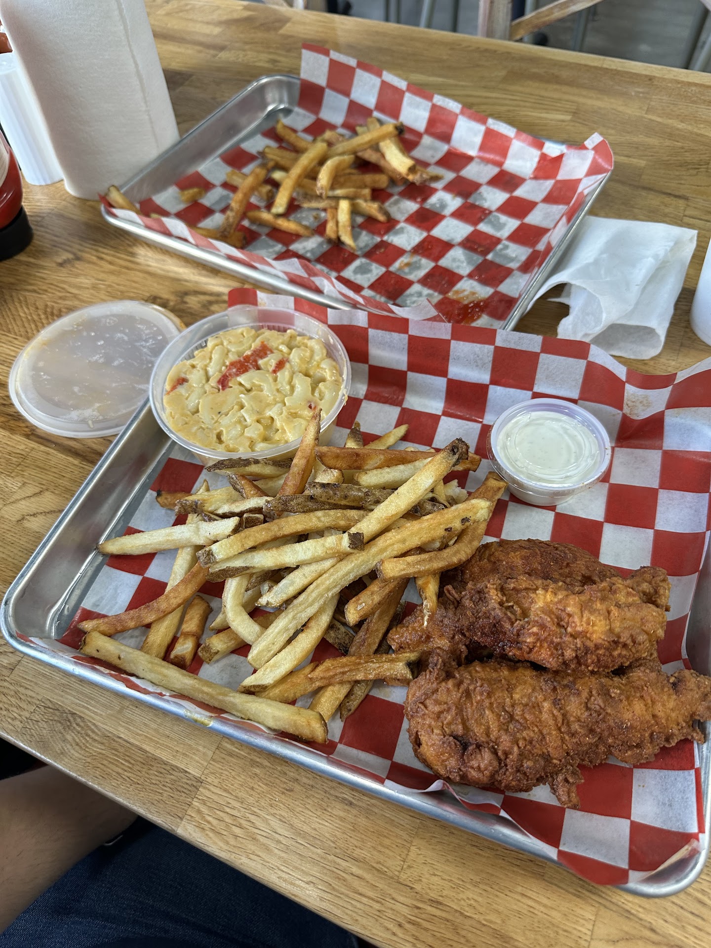 The fries were fresh and delicious with just the right amount of seasoning and brought as a free appetizer when dining in. The fried chicken is made to order and is perfectly cooked with crispy skin for that satisfying crunch. They're so juicy you'll need some extra napkins. I'm not a spice person (I have trouble with table pepper) and went for southern and it was perfect! Still flavorful while palatable for a total whimp like me.