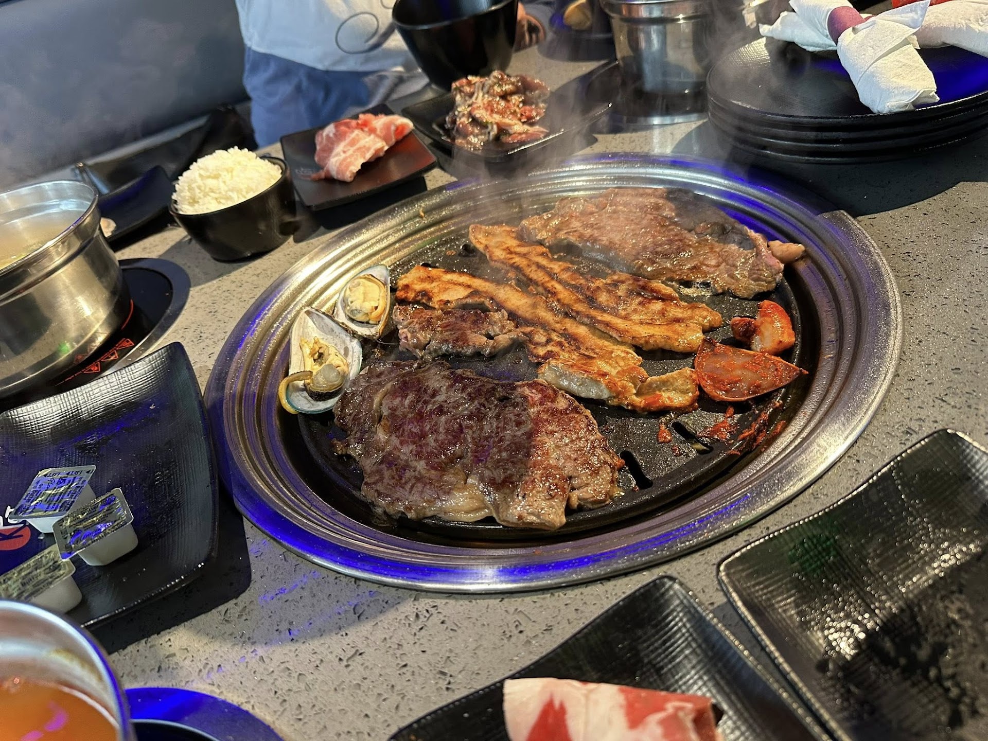 It was my first time trying Korean barbecue, I would recommend to anyone else that if you go to a similar restaurant that you do a little research on what sauces to make. As someone without a great deal of experience with Korean food I struggled to make a sauce at the sauce bar that I actually liked, I wish they had had some sauces available rather than just letting me fumble through mixing different stuff together. They have some general recipes on the wall, but the recipes donât mean much without some kind of ratio or measurements which they donât provide.