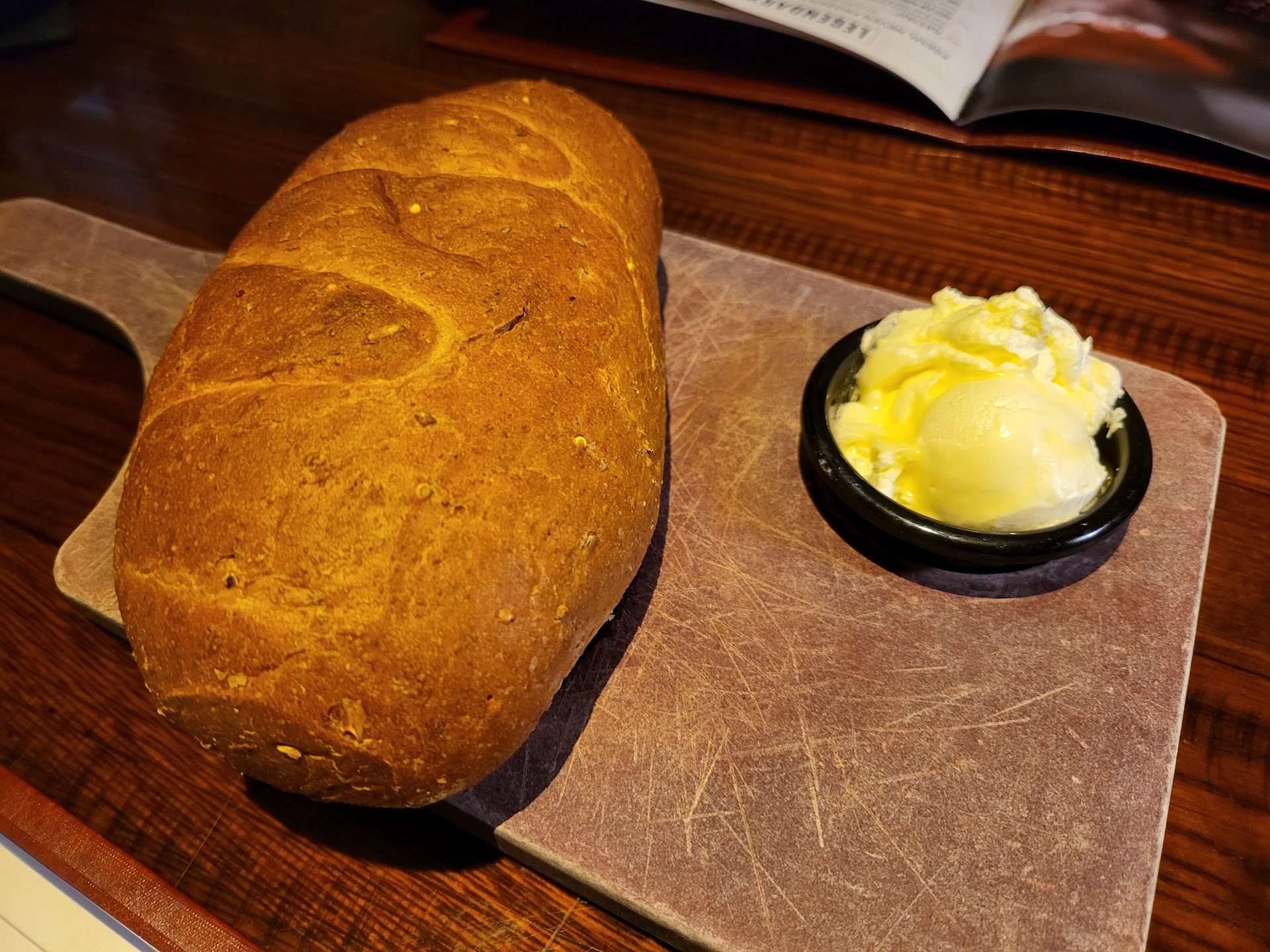 The pros: The food was great as always. Our steaks were cooked and seasoned well, the spinach dip was delish, and the bread was good.